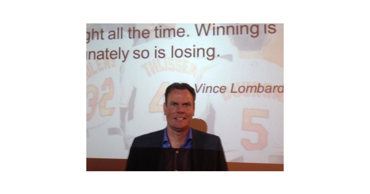 Eenhoorn sloot zijn met oneliners doorspekte verhaal af met een citaat van de beroemde Amerikaanse footballcoach Vince Lombardi over winning: “Winning is not sometimes a thing, it is an all time thing. You don’t win once a while, you don’t do things right once in a while, you do them right all the time. Winning is a habit, unfortunately so is losing.”