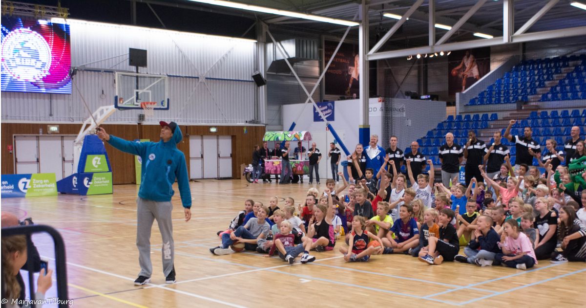 Vandaag hield Zorg en Zekerheid Leiden Basketball weer de jaarlijkse Open Dag. Kinderen en ouders van scholen en basketbalclubs uit Leiden en omgeving kwamen in grote getale naar de Vijf Meihal om deel te nemen aan de clinic, spelletjes en om de spelers van ZZ Leiden te ontmoeten.