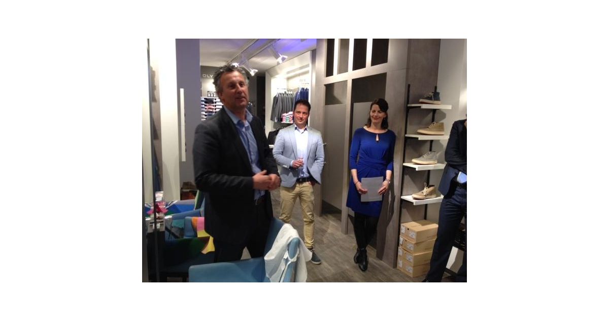 Bij de foto v.l.n.r.: Jan Buitendijk (Focus Nederland), Bas de Wit (Bas de Wit Mode) en kleurconsulente Marjolein Bentvelzen.