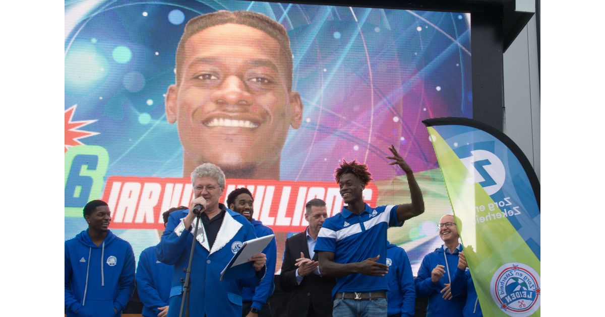 Na de woorden van de voorzitter toog het gezelschap naar buiten. Met verve verwelkomde speaker Martin Hooymans iedereen. Na wat vrolijke woorden was het tijd om het team voor te stellen. Eerst de volledige begeleidingsgroep, daarna was het de beurt aan assistent-coach Ferry Steenmetz en vervolgens alle spelers. Veel van hen hadden dit nog niet eerder meegemaakt en kwamen ietwat verlegen het podium op. Braxton Huggins keek heel verbaasd op toen hij zichzelf op het ledscherm zag. Jarvis Williams kwam al dansend het podium op. Dat hij wat heeft met muziek bleek later op de avond. Hij vroeg de vrouwelijke deejay om uitleg en zorgde daarna voor een verdere muzikale omlijsting van de laatste minuten van het evenement.