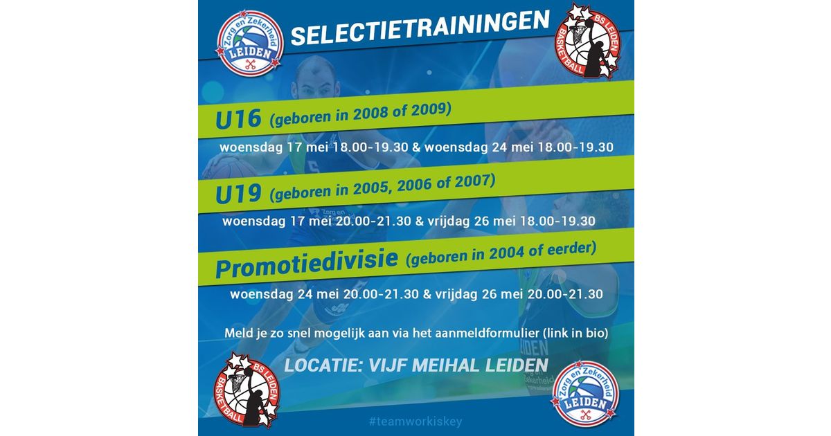 Om deze U16 en U19 groep, maar daarnaast dus ook het promotiedivisie team, vorm te geven, organiseert ZZ Leiden de volgende selectietrainingen: