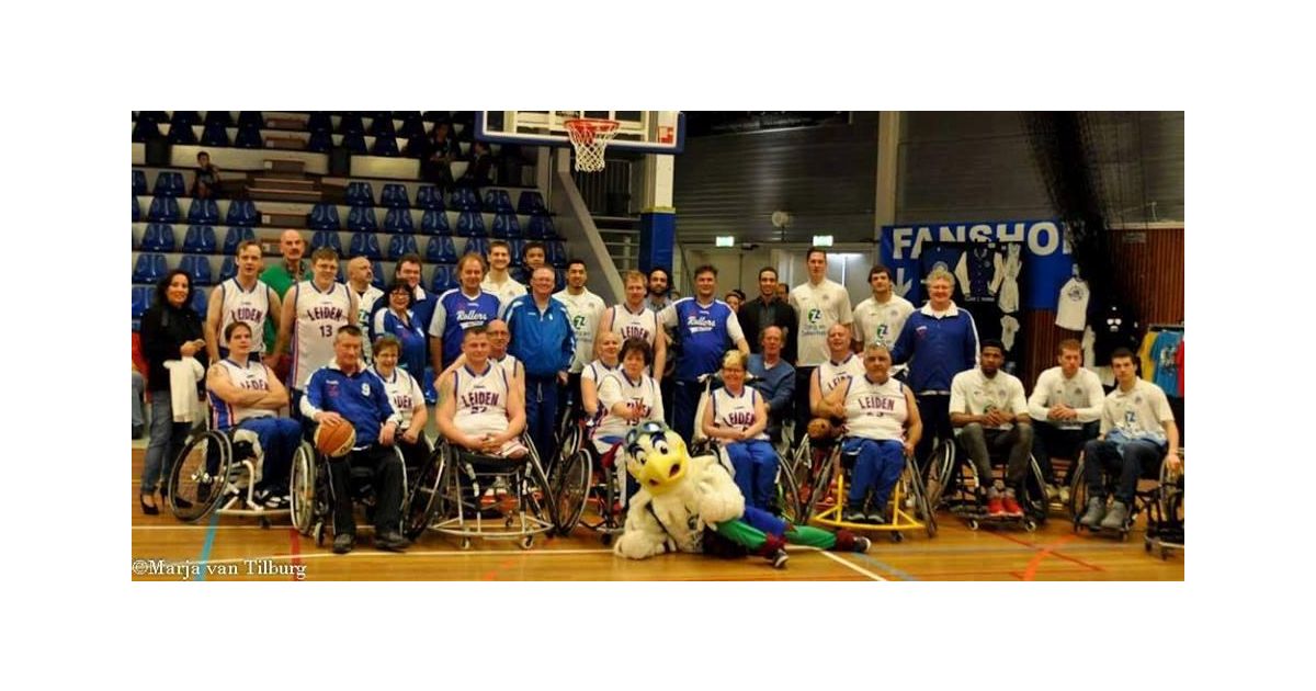 Natuurlijk stapten de heren van Zorg en Zekerheid Leiden zelf ook in een rolstoel om te ervaren hoe dat nou is. Ze deden ook mee aan de warming-up. Burdie draaide ook even een rondje mee, op schoot bij Mohamed Kherrazi die zich uiteraard in een rolstoel voortbewoog.