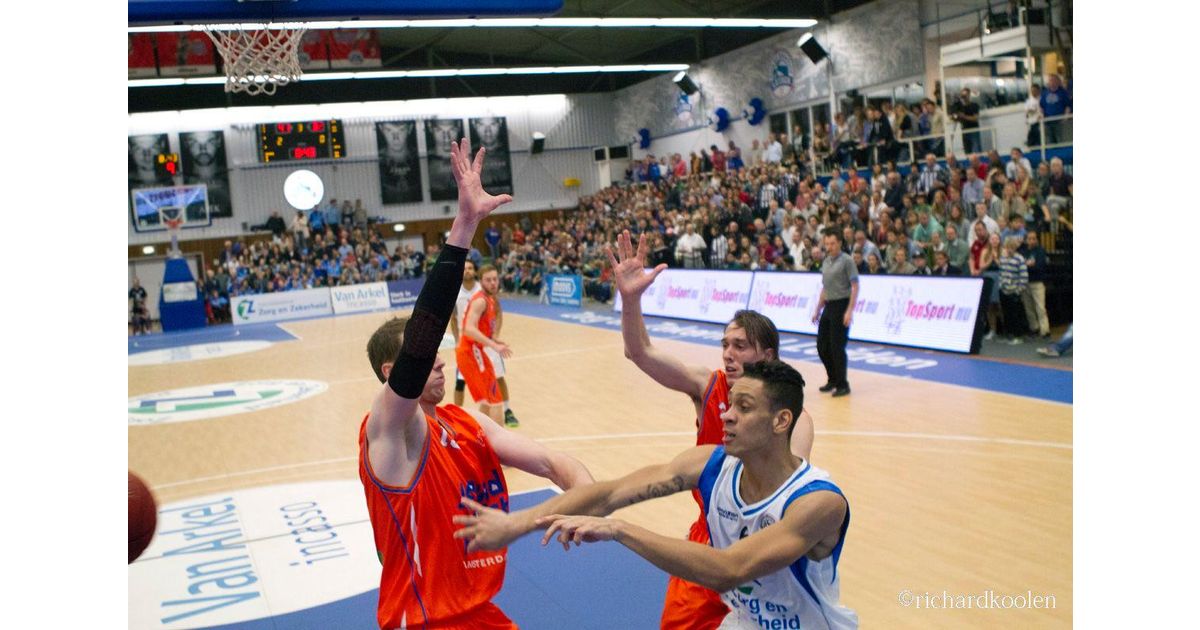 Die marge kwam er na de pauze wel. Worthy de Jong had er zin in en dunkte twee keer na een steal. Maar zijn mooiste score kwam twee minuten voor het eind van het derde kwart. De Jong werd op de achterlijn gefould, maar gooide de bal over het bord door de ring. Vlak daarna werd ook het grootste verschil in de wedstrijd bereikt: 61-39 met nog anderhalve minuut te gaan. Zorg en Zekerheid Leiden sloot het kwart slordig af, want de Amsterdammers mochten toch nog wat terugdoen: 63-46.