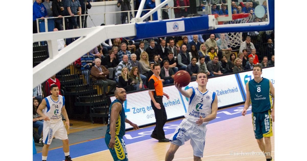 LEIDEN - De eerste zege van 2014 is binnen voor Zorg en Zekerheid Leiden. En wat voor één. Het dit seizoen verrassend sterke Landstede Zwolle werd in een mooie en uitermate spannende wedstrijd waarin van alles gebeurde nipt geklopt. Het werd 76-73 na een bloedstollende slotfase in de kolkende Vijf Meihal.