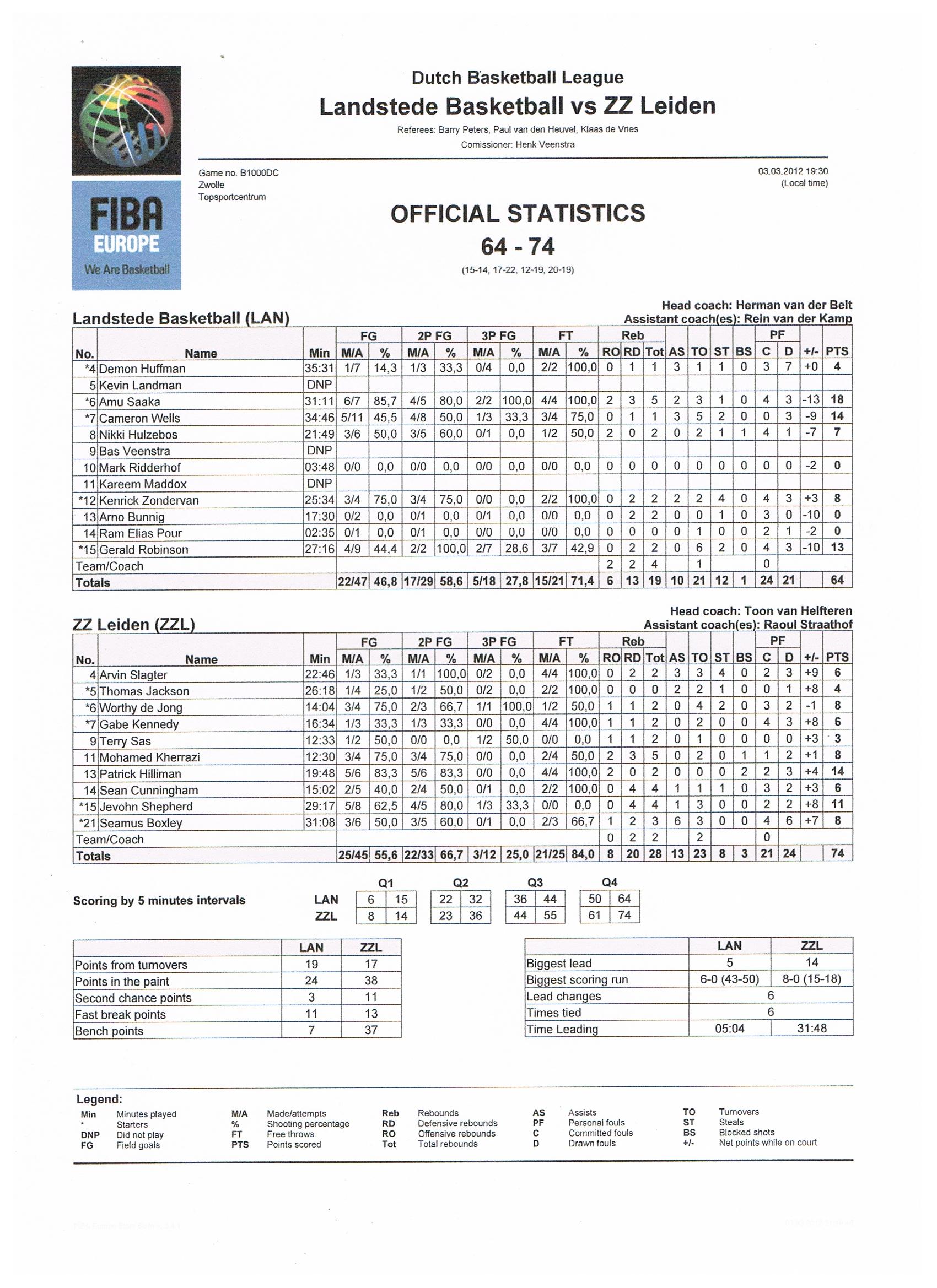 Datum: zaterdag 3 maart 2012 · 19:30 Team: Eredivisie Locatie: Landstede SC