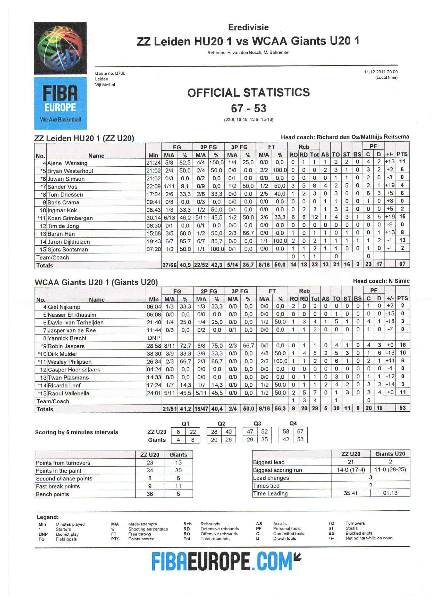 Datum: zondag 11 december 2011 · 20:00 Team: Locatie: Vijf Meihal, Leiden