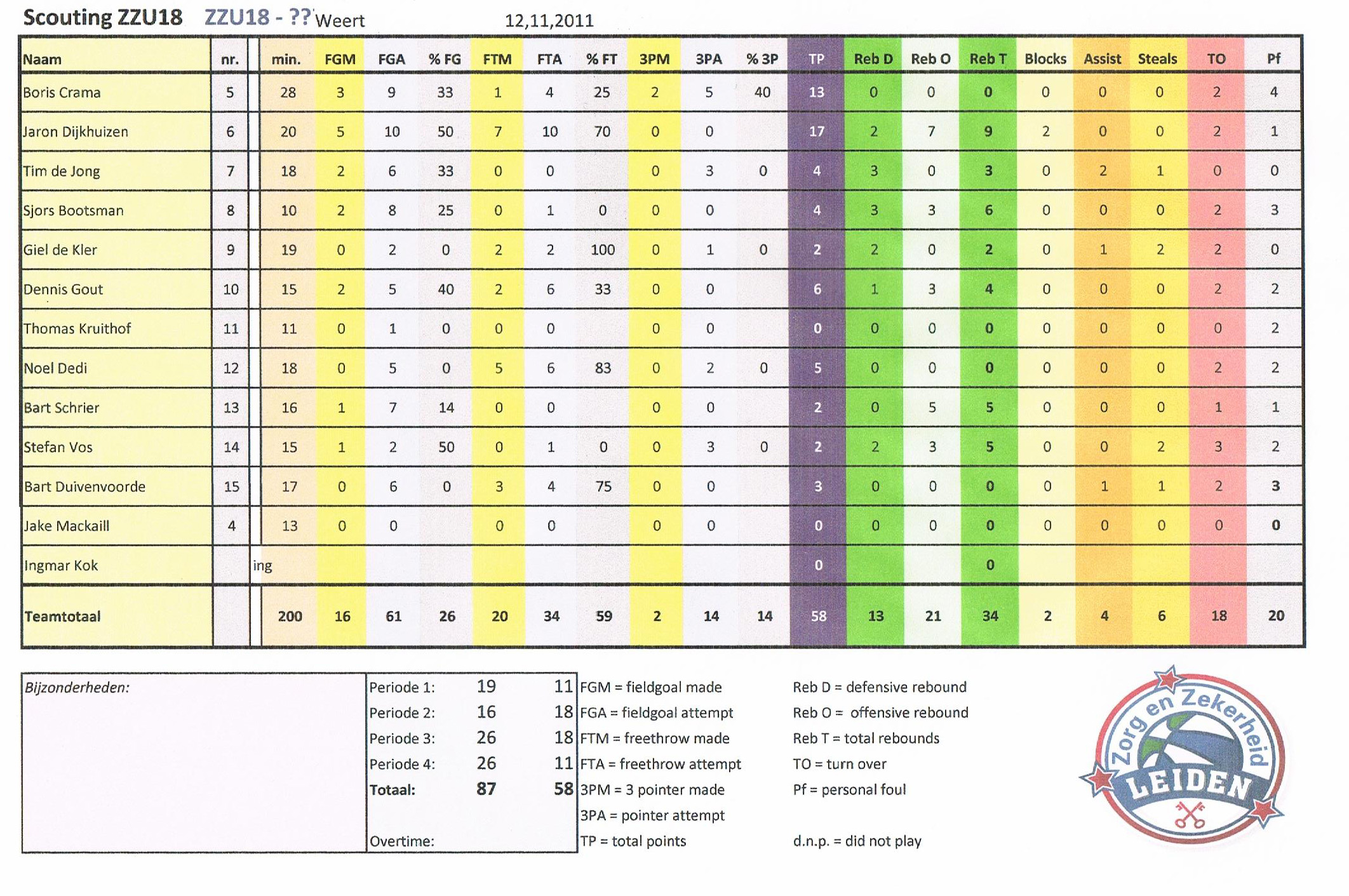 Datum: zaterdag 12 november 2011 · 15:30 Team: Locatie: Weert