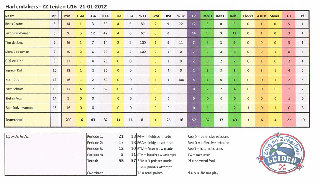 Datum: zaterdag 21 januari 2012 · 16:00 Team: Locatie: Amsterdam-West
