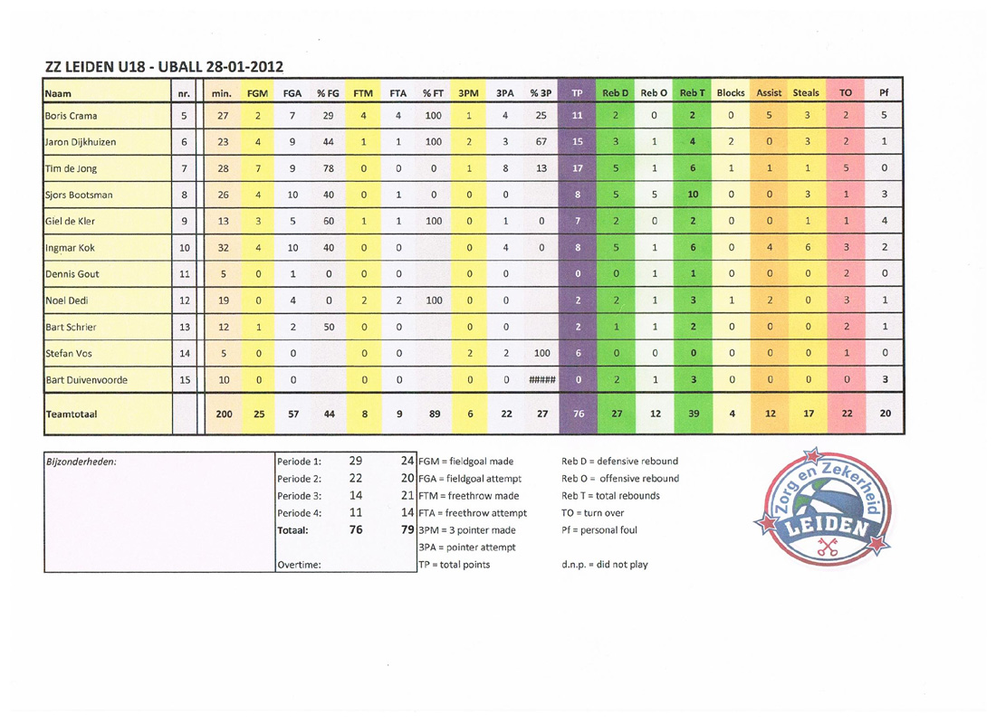 Datum: zaterdag 28 januari 2012 · 15:00 Team: Locatie: Vijf Meihal, Leiden