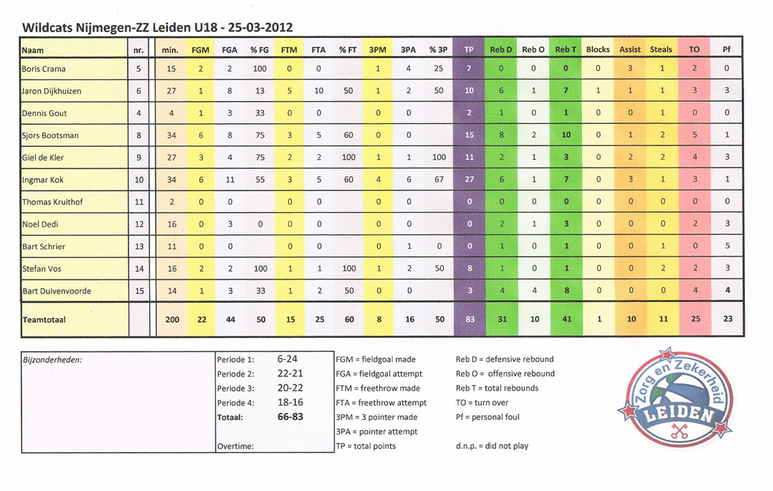 Datum: zondag 25 maart 2012 · 17:00 Team: Locatie: Nijmegen