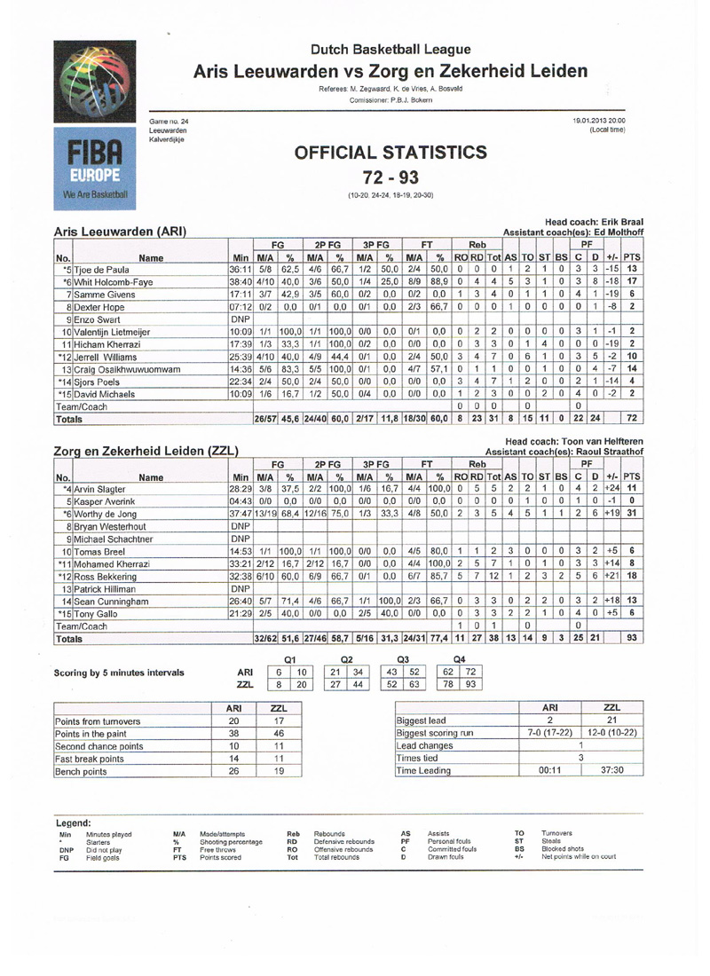 Datum: zaterdag 19 januari 2013 · 20:00 Team: Eredivisie Locatie: Leeuwarden