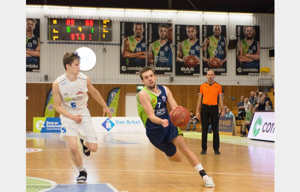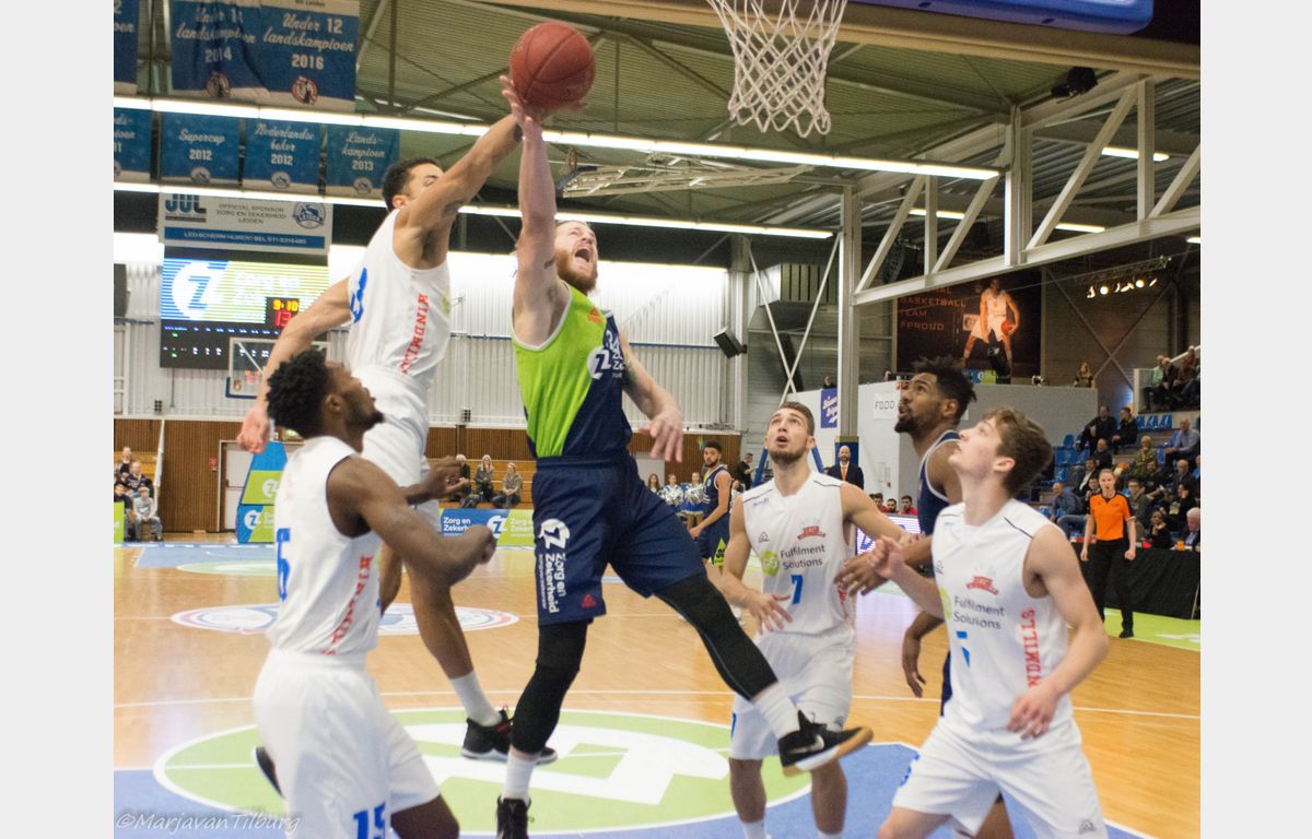 Zorg en Zekerheid Leiden had het aanvankelijk lastig met debutant Dutch Windmills. De ploeg uit Dordrecht schoot met scherp, maar tegen het einde van de eerste helft sloeg Zorg en Zekerheid Leiden een gaatje. Daarna ging de Leidse ploeg goed door en waren er ook weer genoeg hoogstandjes te zien. Uiteindelijk werd het 91-66 voor de Leidse ploeg.