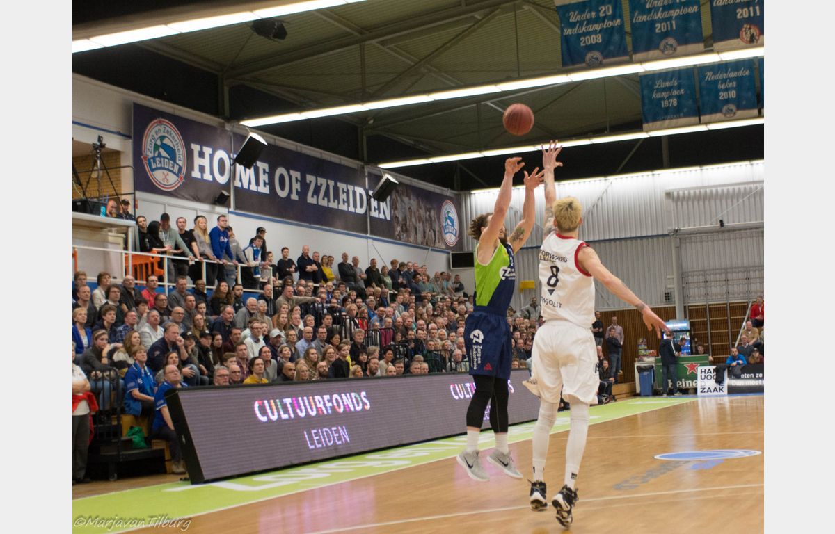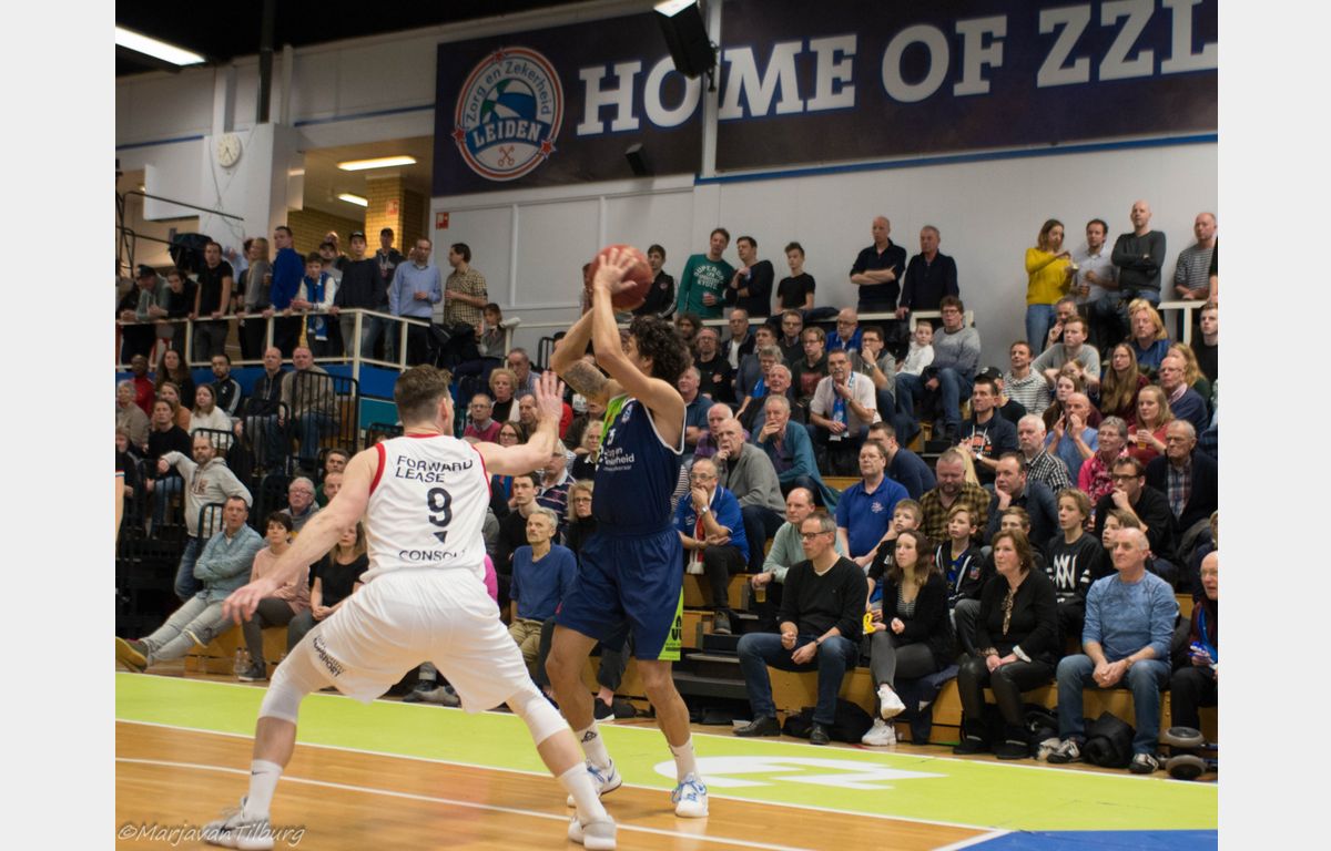 Zorg en Zekerheid Leiden heeft zich tussen twee Europese wedstrijden in niet laten verrassen door Feyenoord Basketball Rotterdam. De formatie van coach Richard den Os moest de Leidse ploeg na een 19-0 run in het derde kwart laten gaan. Dankzij de 92-68 overwinning scherpte de ploeg van coach Rolf Franke het record van meeste competitiezeges op rij aan tot veertien stuks.