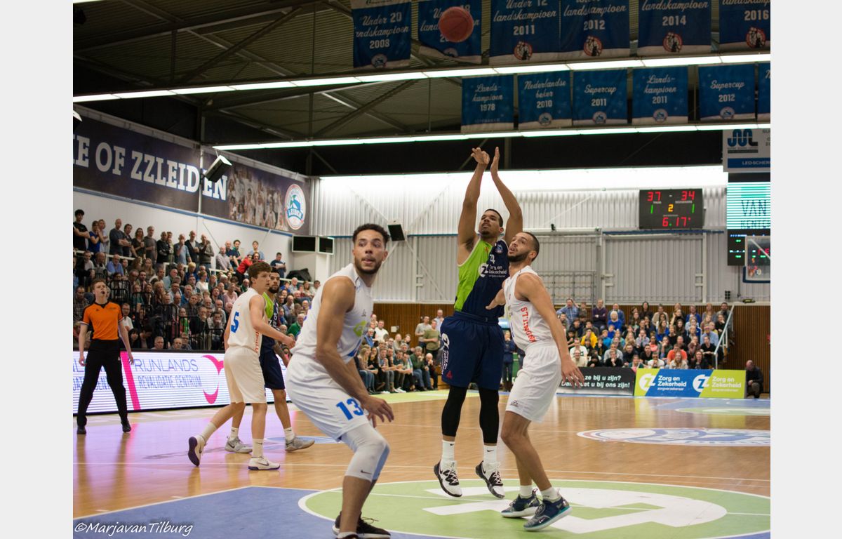 Via een lay-up en een dunk van Shavon Coleman werd het nog wel 49-51, maar daarna nam Zorg en Zekerheid Leiden langzaam de regie over. Kenneth Simms, die op het punt stond om gewisseld te worden, kwam ineens door met een assist op Thompson en een and-1, waarna De Jong twee drietjes op rij benutte. Dit snelle tussensprintje bracht de Leidse ploeg op een voorsprong van acht punten. Watson raakte weer eens in zijn element en ook De Randamie liet nuttige dingen zien, vooral op de momenten dat Dutch Windmills het met een zone probeerde. Met vier punten op rij bezorgde De Randamie (vandaag goed voor 16 punten) de Leidse formatie een voorsprong van 71-63 na drie kwarten.