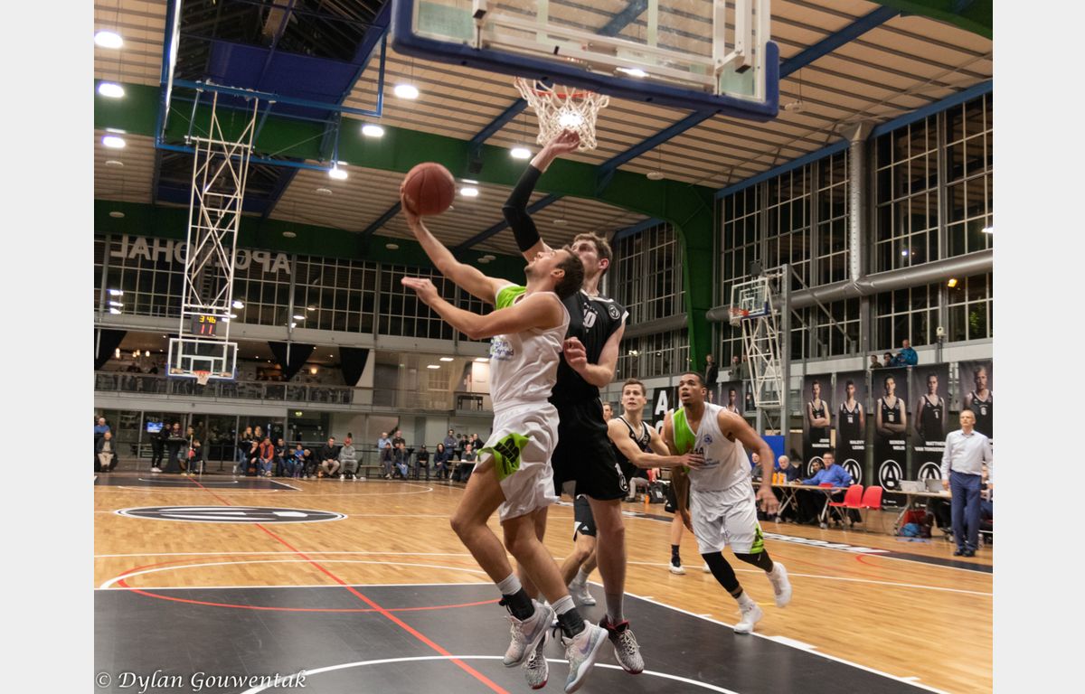 Zorg en Zekerheid Leiden heeft in Amsterdam een rustig avondje gehad. Dat is wel eens anders geweest. Apollo Amsterdam opende met een 8-0 run, maar daarna kwam de Leidse ploeg op stoom. Via een ruststand van 34-46 werd het uiteindelijk 61-93. Coach Rolf Franke zette negen spelers in het veld en die kwamen allemaal tot scoren.