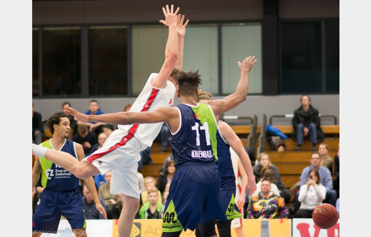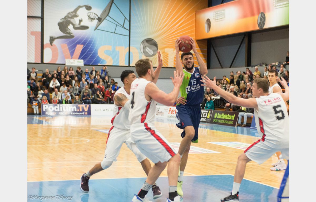 Een 4-point play van Masterson zorgde zeven minuten voor tijd voor een verschil minder dan tien punten: 72-81. In deze fase liet De Jong zich weer eens gelden. Met twee bekeken schotjes via het bord en een hangende one-hander verhinderde de international een verdere terugkeer van Aris Leeuwarden: 75-87. Thomspon volgde zijn voorbeeld en rondde ook nog drie keer fraai en atletisch af, terwijl Marijn Ververs ook nog tot scoren kwam. De 81-95 was zeer zeker verdiend. Rolf Franke zag vijf spelers zich in de dubbele cijfers schieten: Thompson 27 (13 assists), Vette 19 (11 rebounds), Simms 18, De Jong 16 en Kherrazi 13.