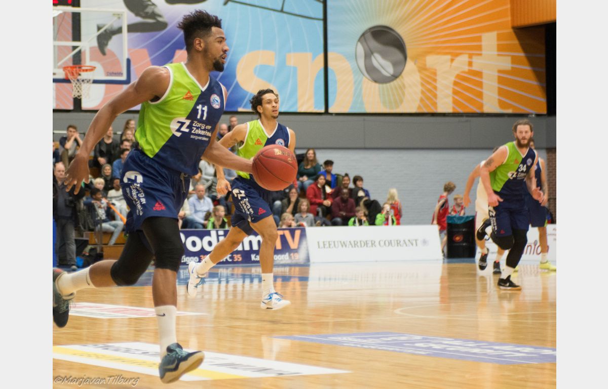 Griffin Kinney en Nick Masterson deden daarna nog wat terug voor Aris, maar telkens als de Friezen dichterbij leken te komen, pakte Zorg en Zekerheid Leiden de draad weer op. Bij 13-20 stonden De Jong en Mohamed Kherrazi pal. Het eerste kwart werd afgesloten met een 15-29 voorsprong voor Zorg en Zekerheid Leiden.