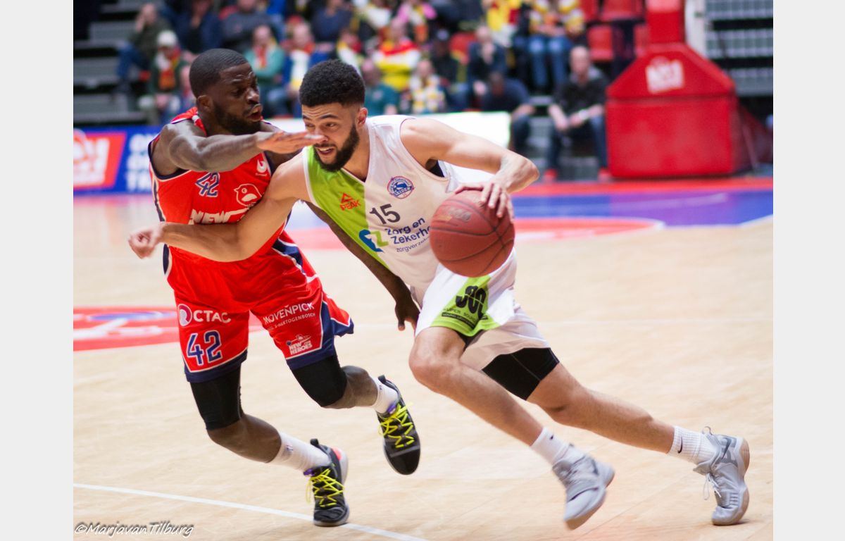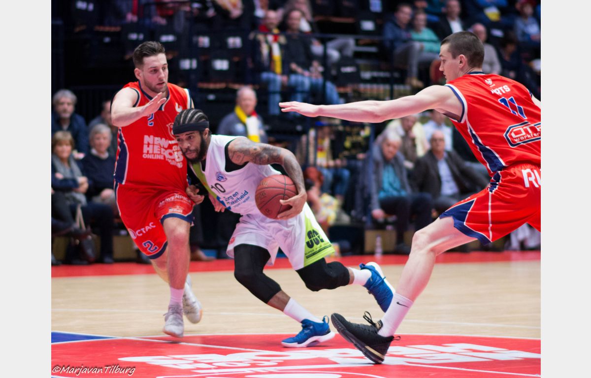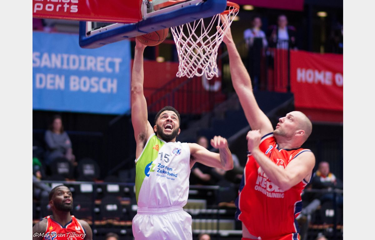 Zorg en Zekerheid Leiden heeft voor de derde keer dit seizoen New Heroes Den Bosch verslagen. Ook zonder de geblesseerde Mohamed Kherrazi denderde de Leidse trein weer door naar de zeventiende opeenvolgende competitiezege. Via 26-32 bij rust werd het uiteindelijk 65-74 voor Zorg en Zekerheid Leiden.
