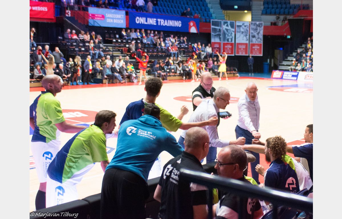 Zorg en Zekerheid Leiden heeft dit seizoen aangetoond wedstrijden te kunnen winnen door een surplus aan aanvallende power, maar vanavond was het gewoon weer ouderwets buffelen in de verdediging en het tempo van de wedstrijd bepalen. Den Bosch was natuurlijk in carnavalssferen en dat had wellicht ook wat weerslag op de publieke opkomst. Geregeld hoorde je de Leidse fans overal bovenuit komen en dat is een steun die de Leidse spelers zeker gewaardeerd hebben.