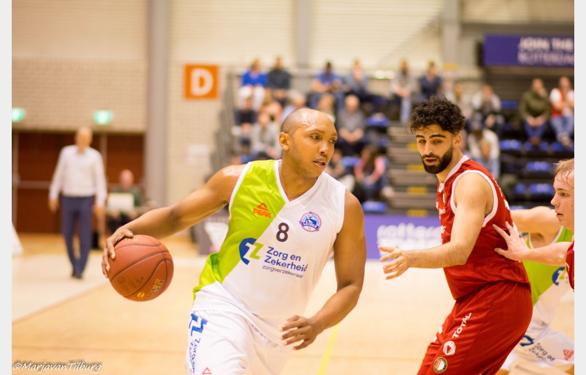 Veel maakte dat niet uit, want Zorg en Zekerheid Leiden ging gewoon door. Clayton Vette knalde zijn enige driepunter binnen, waarna Simms weer een dunk plaatste. Na een and-1 van Thompson en weer een drietje van Watson, nam coach Stalman in de achtste minuut opnieuw een time-out. Stand op dat moment: 39-69.