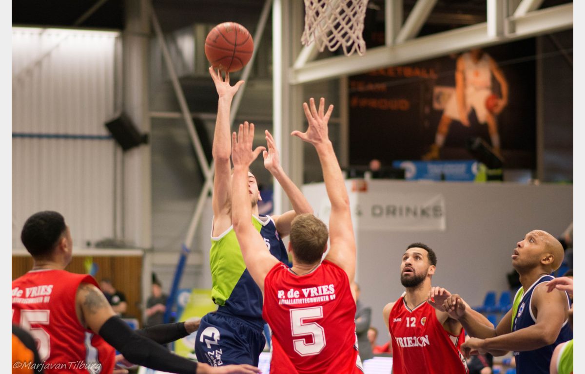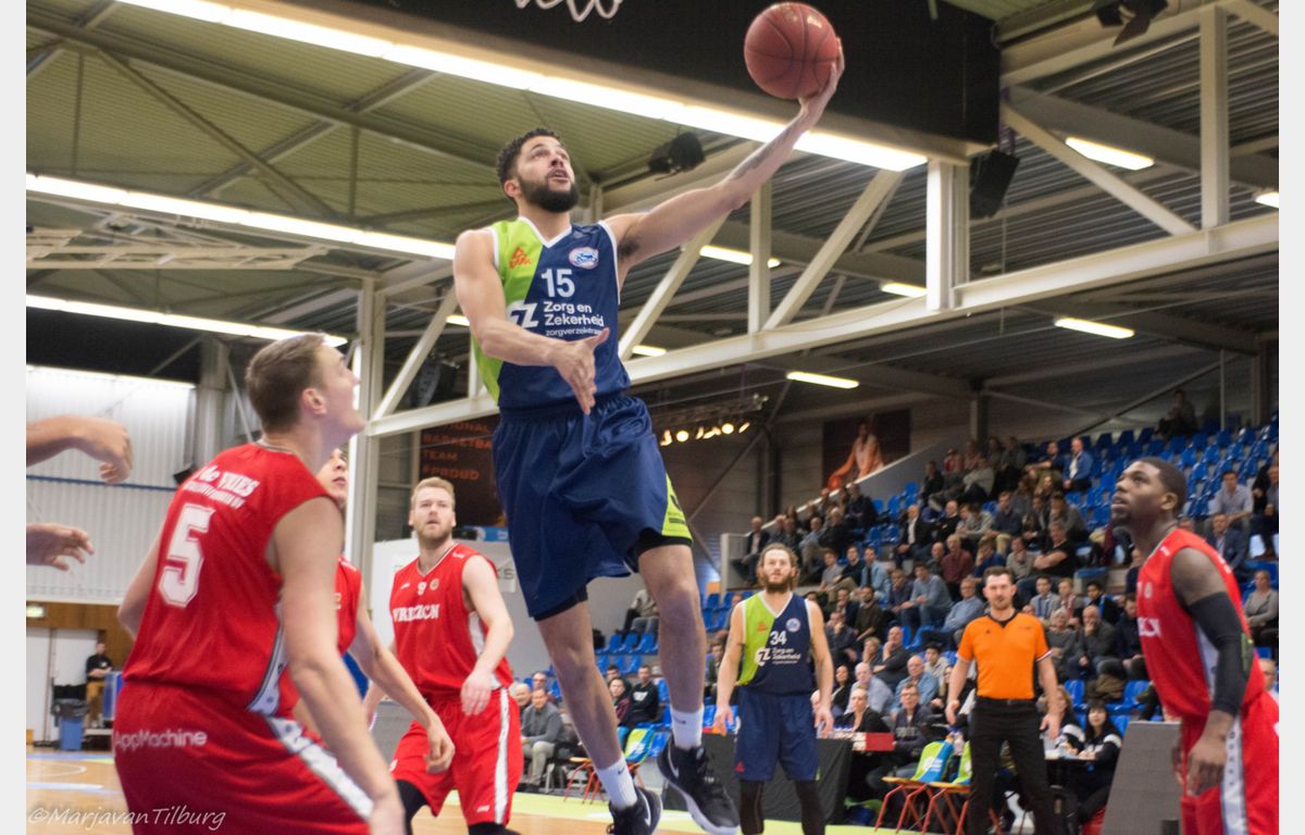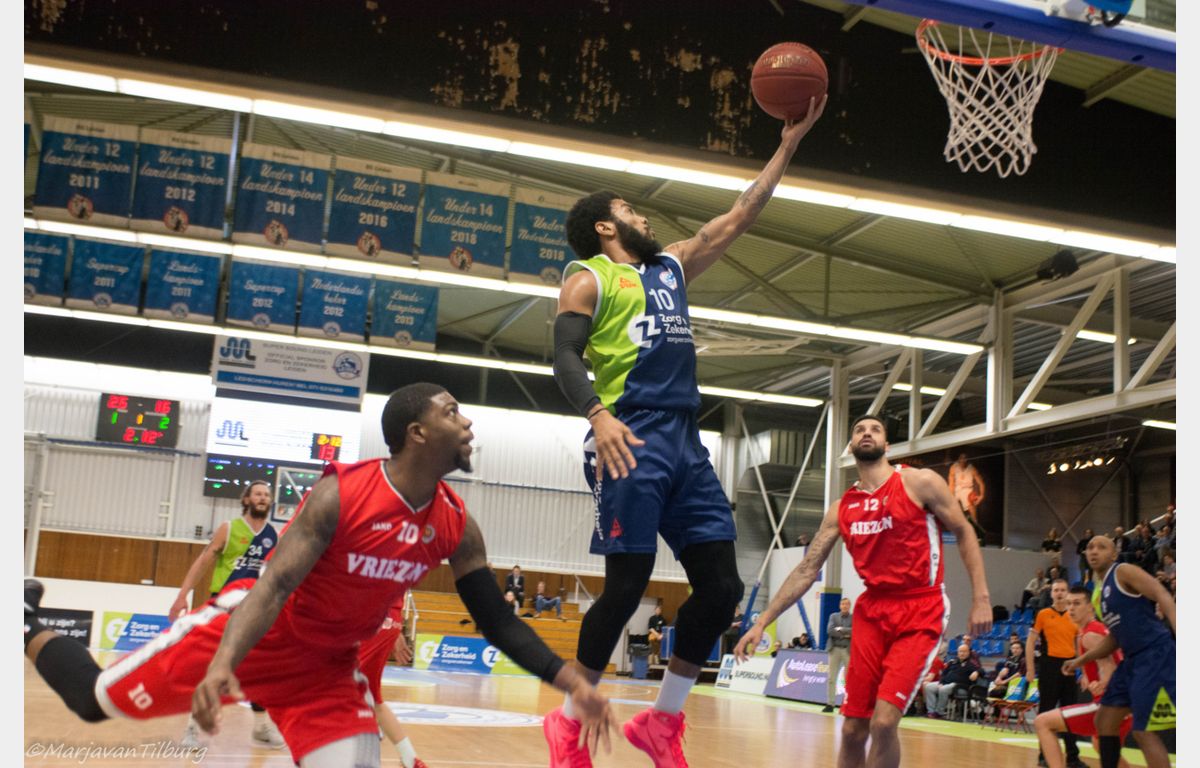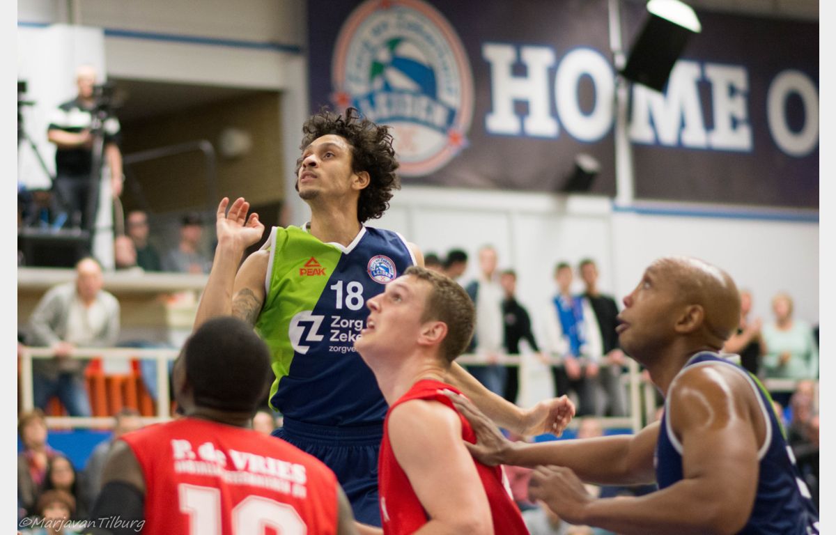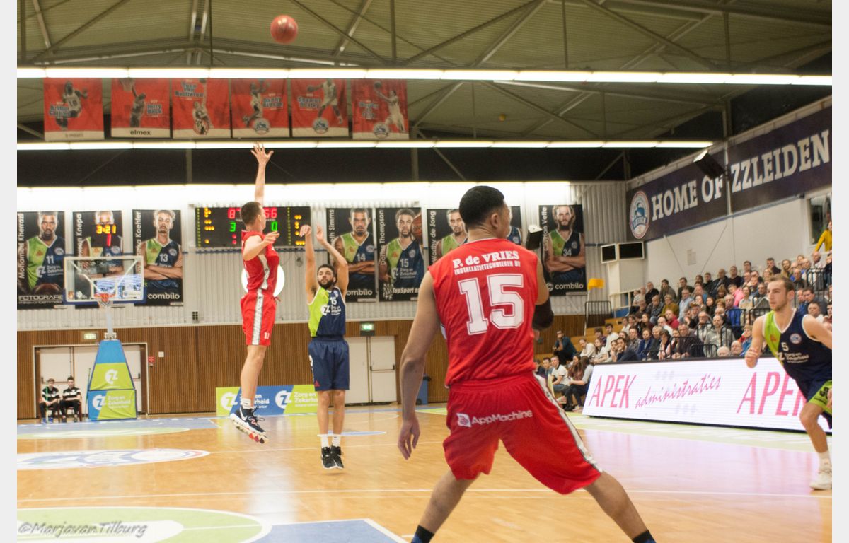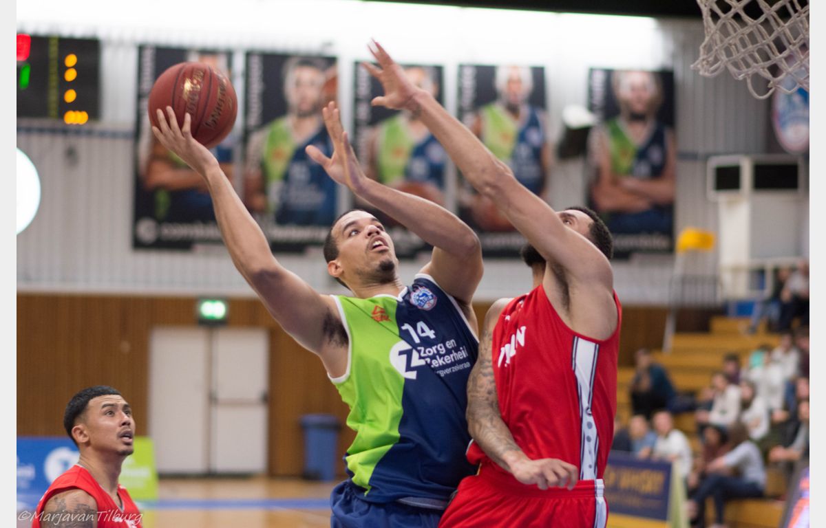 Zorg en Zekerheid Leiden voert de ranglijst van de Dutch Basketball League aan. Virtueel was dat al zo, maar nu is het ook gebaseerd op het aantal winstpunten. Om dit te bereiken, moest de Leidse ploeg woensdagavond winnen van Aris Leeuwarden. In een spectaculaire wedstrijd lukte dit volgens verwachting ook. Via een ruststand van 46-34 werd het uiteindelijk 96-75.