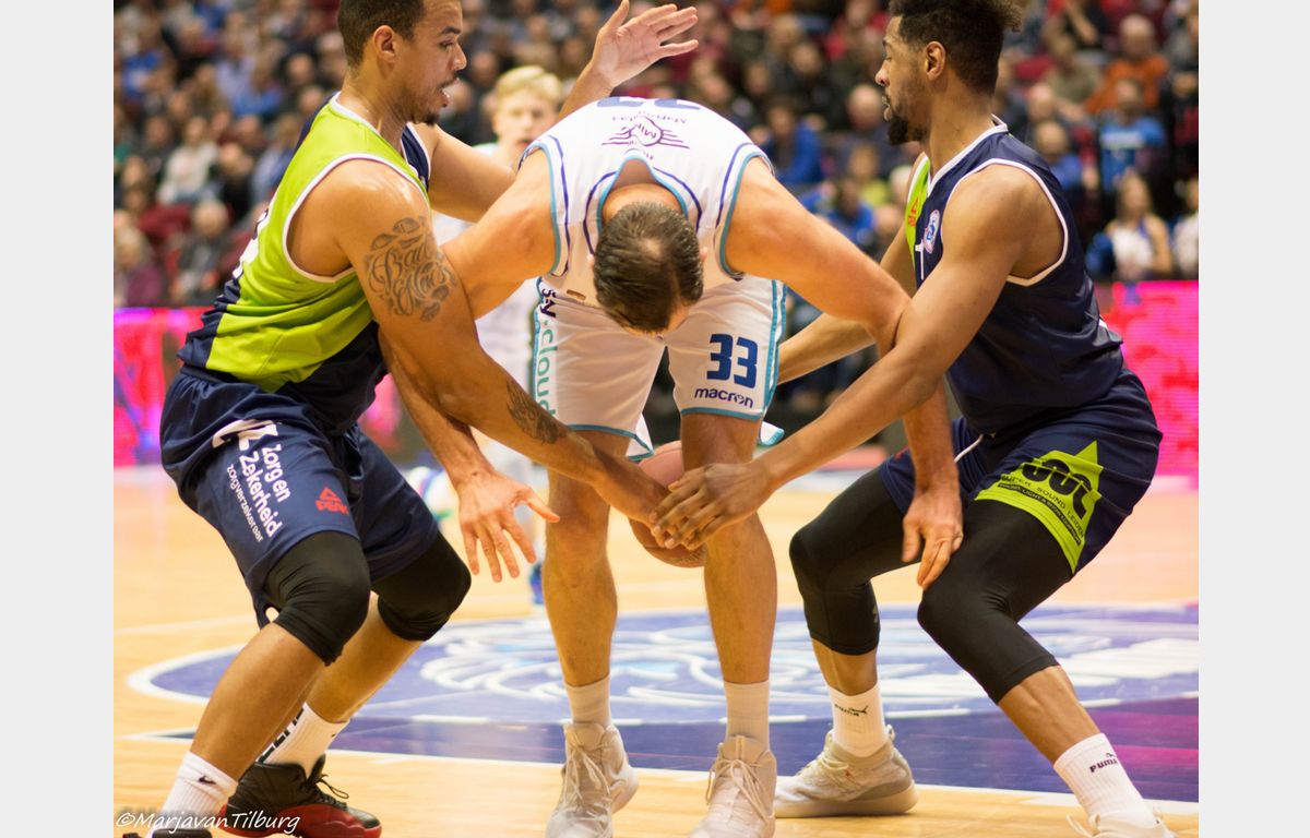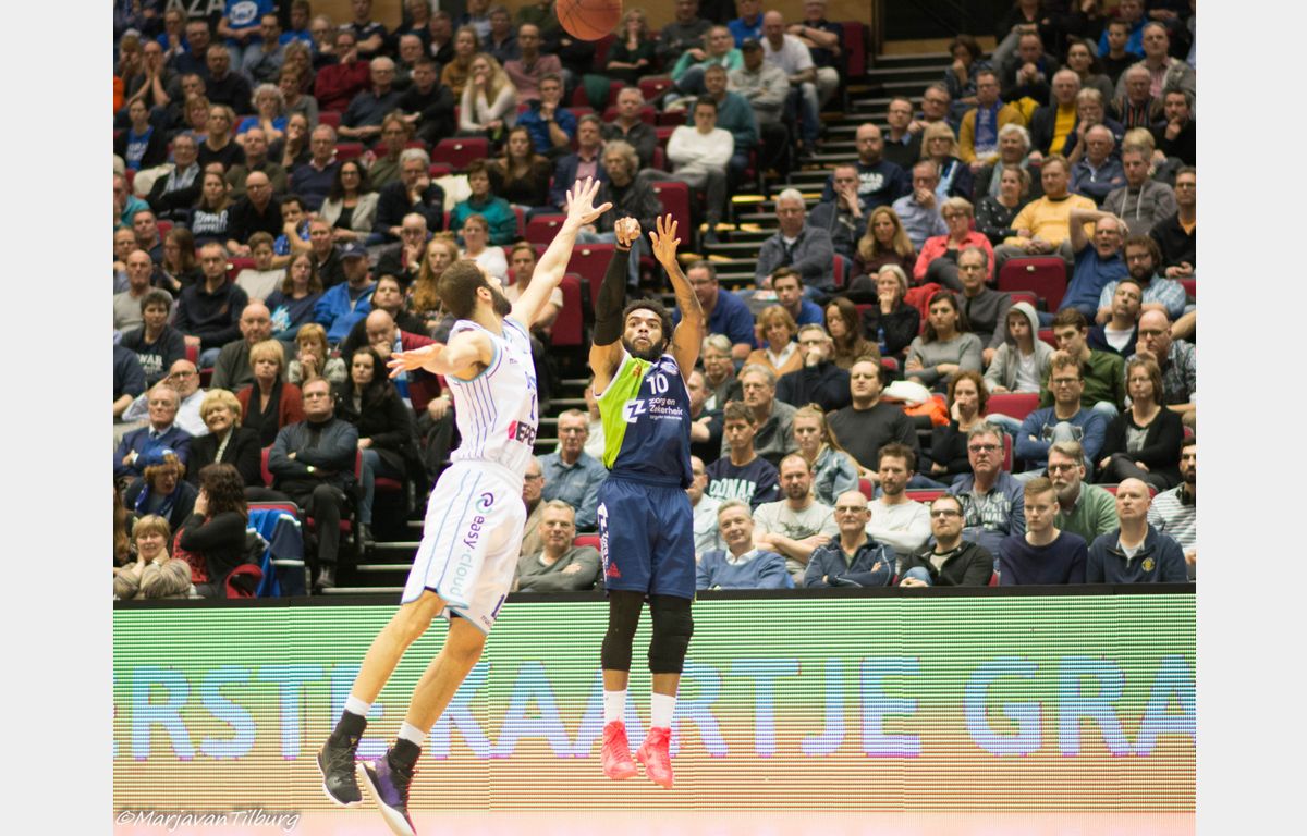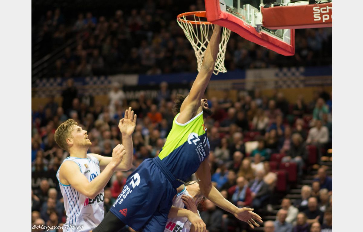 In het tweede deel van het derde kwart sloeg Zorg en Zekerheid Leiden haar slag. Kherrazi scoorde twee keer onder de borden en Vette had op assist van De Jong een lekkere dunk op de break. Nadat De Jong 46-54 had laten aantekenen, pakte Braal al zijn tweede time-out na rust. Dat had weinig effect, want Zorg en Zekerheid Leiden ging gewoon door. Twee rake vrije worpen en een drietje van Thompson zorgden voor een 48-59 stand na drie kwarten.
