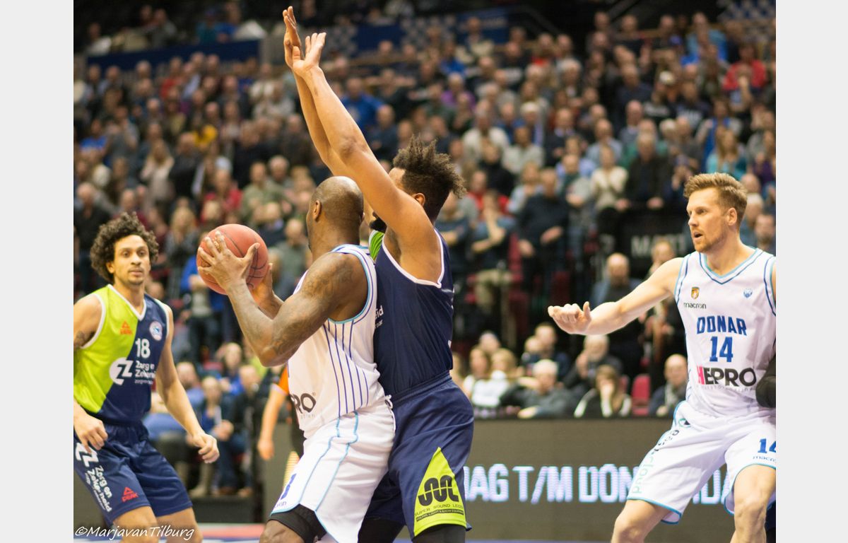 Zorg en Zekerheid Leiden heeft een kleine voorsprong te pakken in de halve finale van het bekertoernooi. De Leidse ploeg kwam halverwege het laatste kwart met 15 punten voor te staan, maar zag Donar in de eindfase nog terugkomen tot 66-71. Of deze marge voldoende is om de finale te bereiken, moet op 16 maart blijken.
