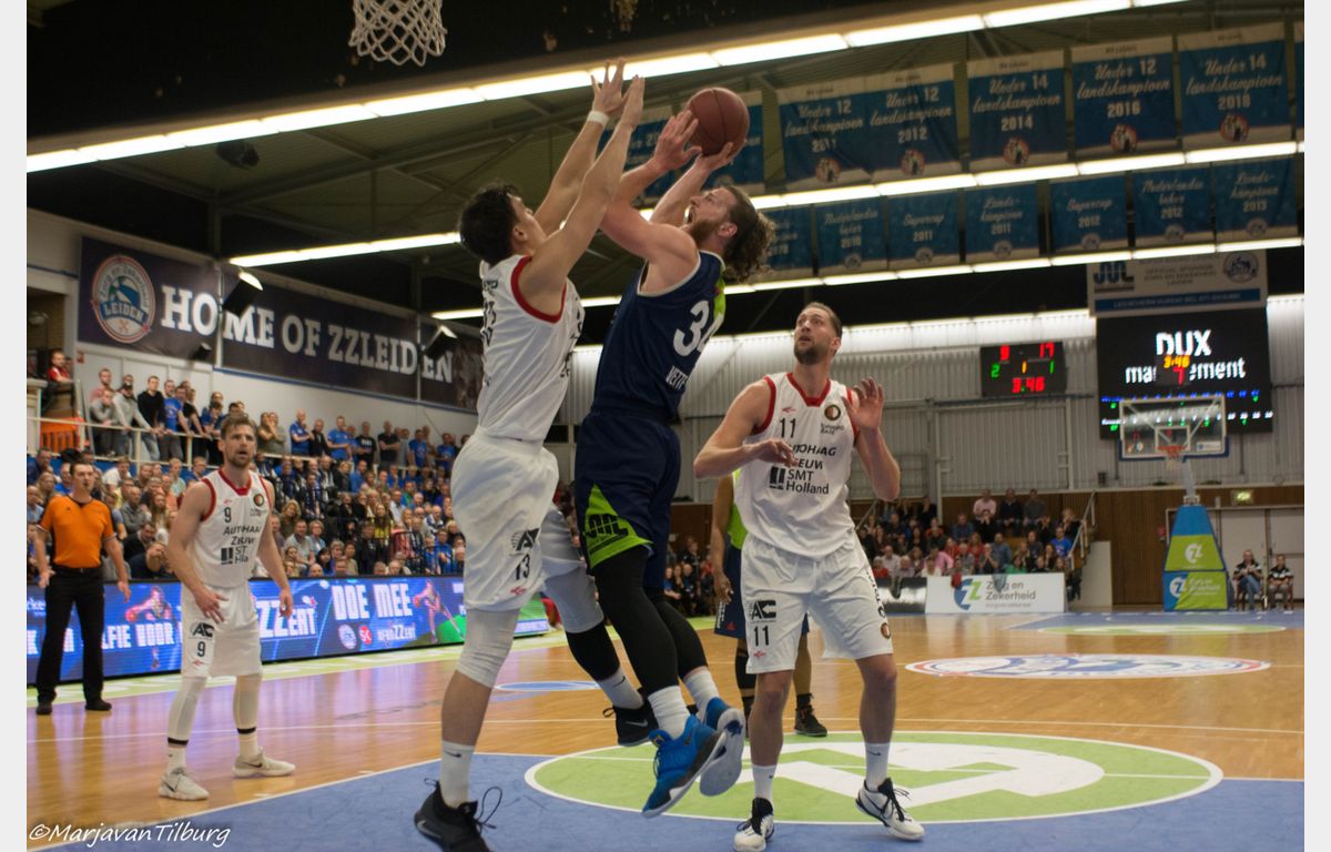 Uiteindelijk liep het verschil nog hoog op: 96-72. Niet dat een doelsaldo van belang is, want het staat nu 1-0 voor Zorg en Zekerheid Leiden. Komende donderdag gaat het circus verder in Rotterdam.