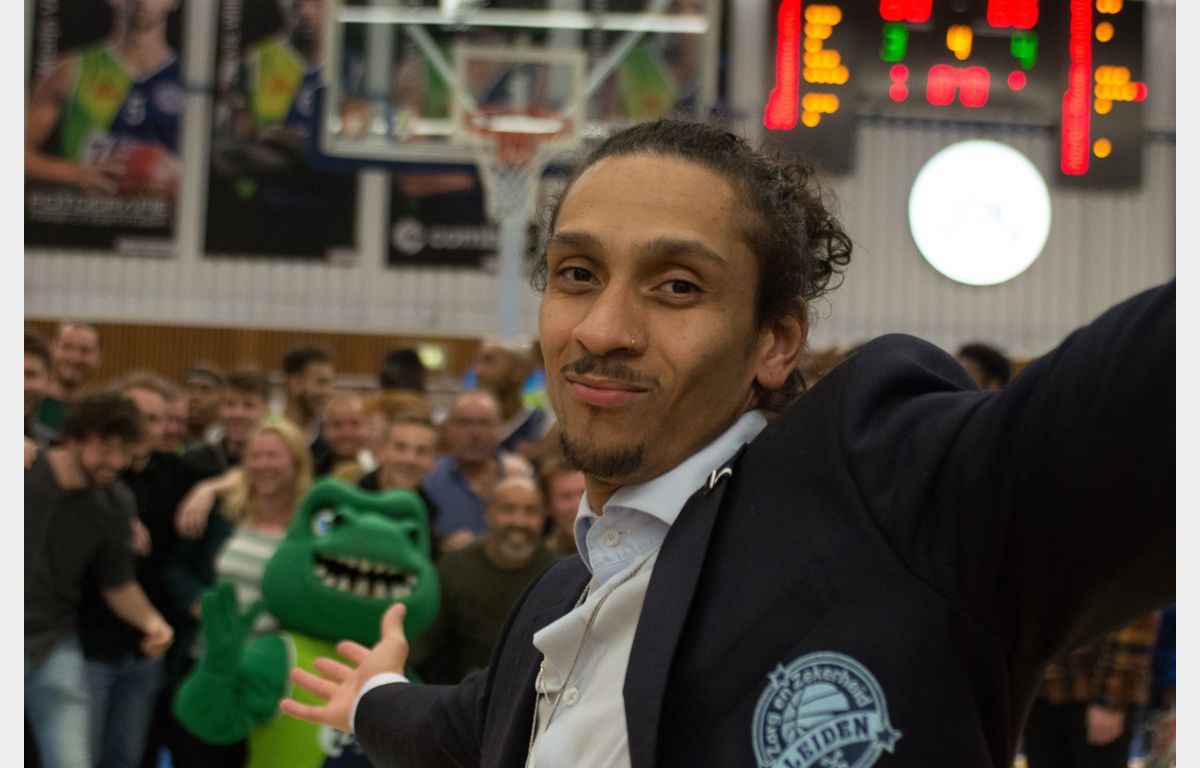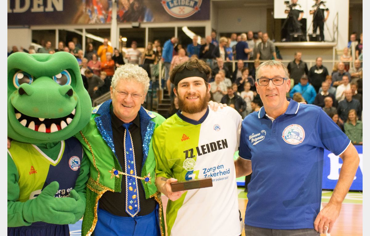 Voorafgaand aan de wedstrijd werd Tayler Persons gehuldigd. Hij was door de fans gekozen tot Speler van de Maand Oktober. Trots als een pauw zag Doug Persons dit aan. De vader van de Leidse spelverdeler was vanuit de States overgekomen om zijn zoon te zien spelen.