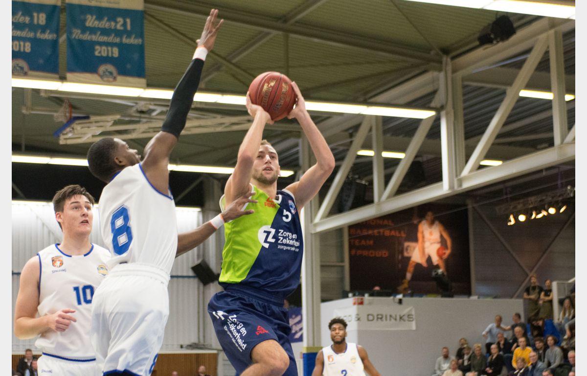 Zonder Worthy de Jong heeft Zorg en Zekerheid Leiden korte metten gemaakt met Den Helder Suns. De bezoekers bleven in het eerste kwart nog enigszins in de buurt, maar werden in het tweede kwart op ruime afstand gezet: 49-31. Mede door goed spel van Marijn Ververs en Troy Koehler liep het verschil na rust nog wat meer op. Uiteindelijk werd het 89-65.