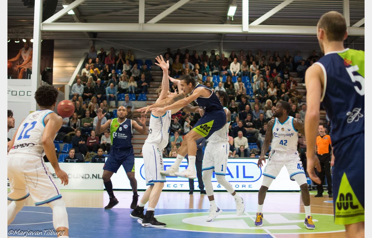 Zorg en Zekerheid Leiden heeft zaterdag de eerste thuisnederlaag van het seizoen geleden. De Leidse ploeg kwam al vrij snel op achterstand, vocht zich terug, maar moest het incomplete Donar in het vierde kwart laten gaan. Drie turnovers bij een penetratie kwamen Zorg en Zekerheid Leiden uiteindelijk duur te staan. Donar pakte derhalve de winst met 72-80.
