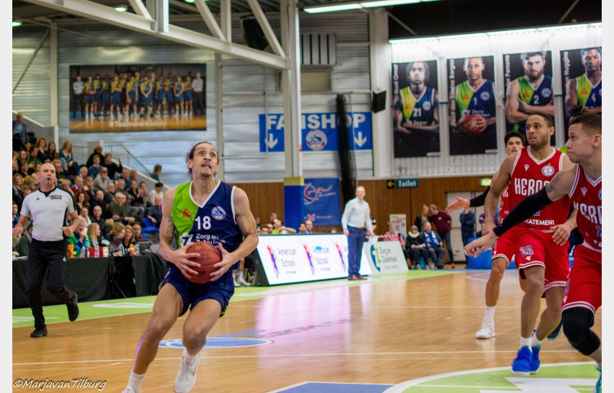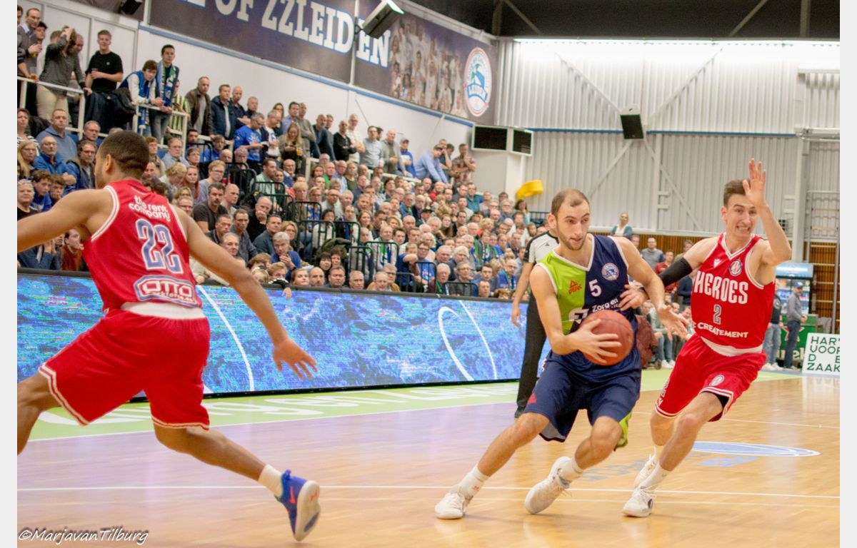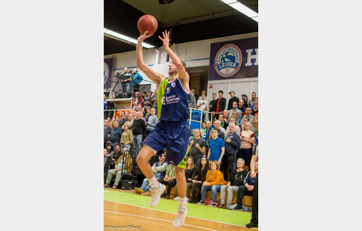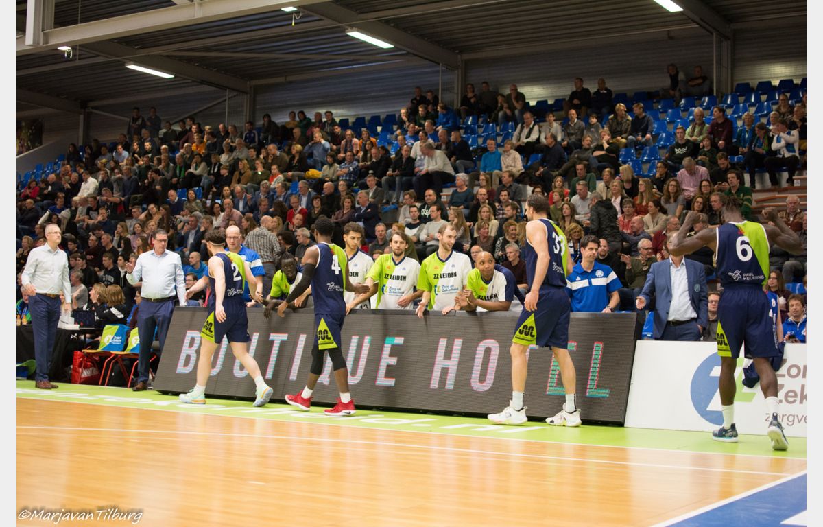 Zorg en Zekerheid Leiden heeft zich gerevancheerd voor de nederlaag in Den Bosch en toch ook wel voor de grote nederlaag van afgelopen woensdag tegen Pinar Karsiyaka. De Leidse ploeg schoot uit de startblokken: 15-3 na vijf minuten. Na de pauze (44-30) kwam Heroes Den Bosch een paar keer gevaarlijk dichtbij, maar telkens stond een andere Leidse speler op. Uiteindelijk werd het 88-78 voor Zorg en Zekerheid Leiden.