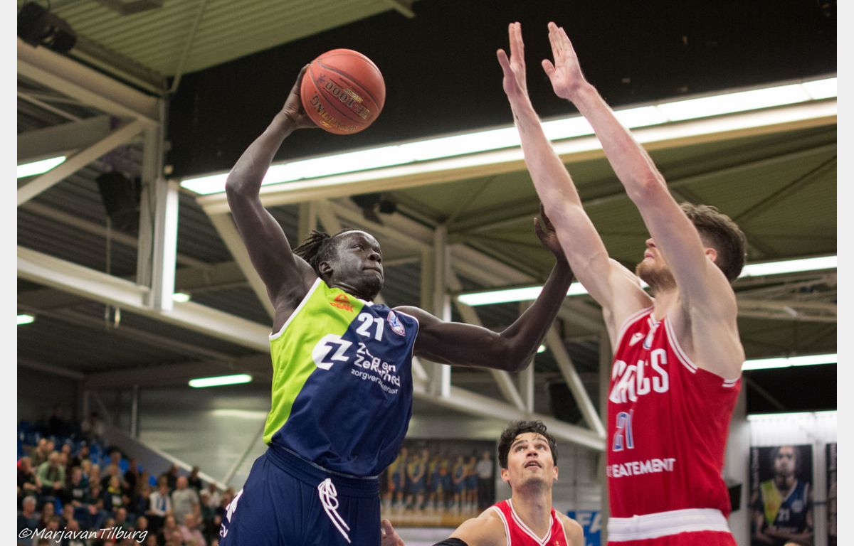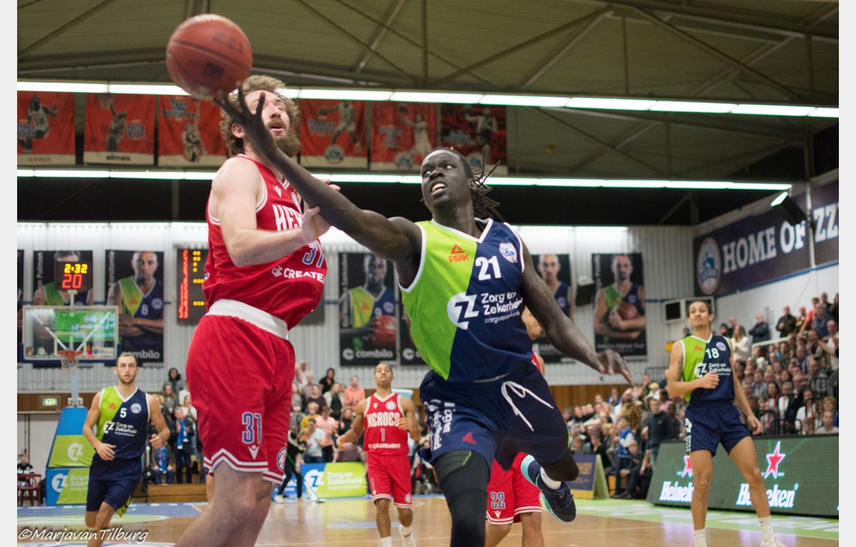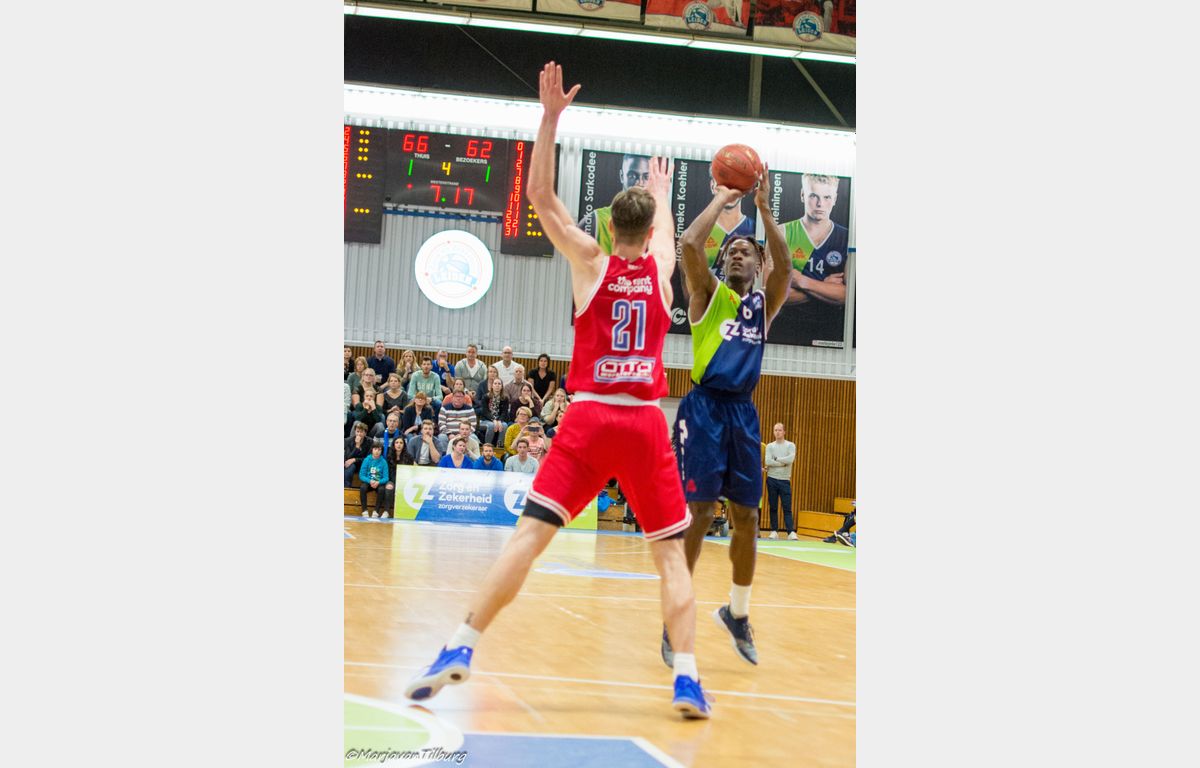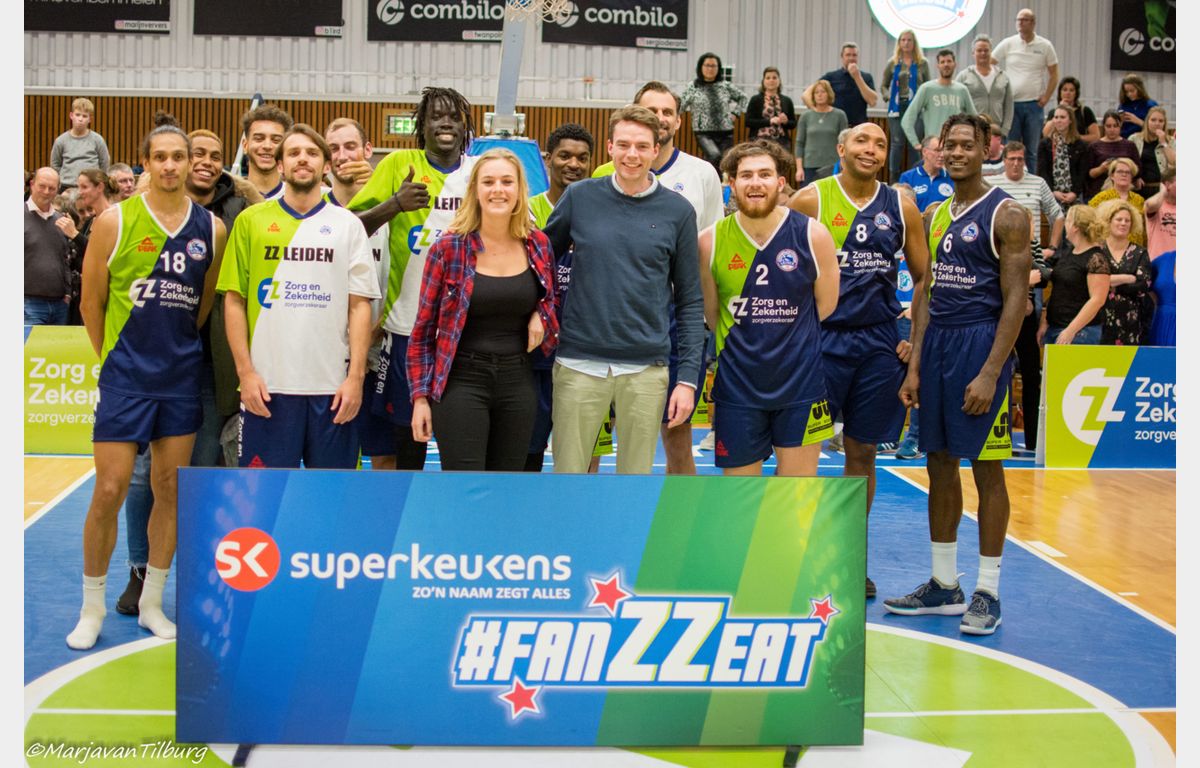 Zorg en Zekerheid Leiden heeft zich gerevancheerd voor de nederlaag in Den Bosch en toch ook wel voor de grote nederlaag van afgelopen woensdag tegen Pinar Karsiyaka. De Leidse ploeg schoot uit de startblokken: 15-3 na vijf minuten. Na de pauze (44-30) kwam Heroes Den Bosch een paar keer gevaarlijk dichtbij, maar telkens stond een andere Leidse speler op. Uiteindelijk werd het 88-78 voor Zorg en Zekerheid Leiden.