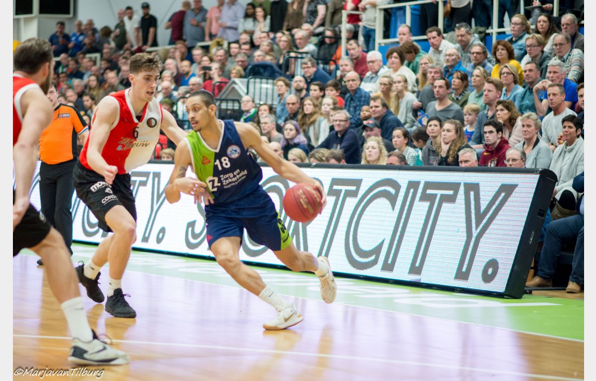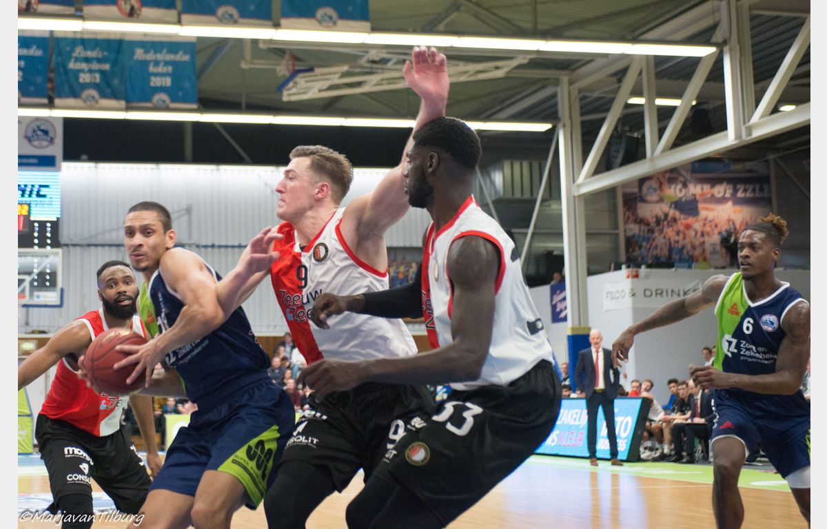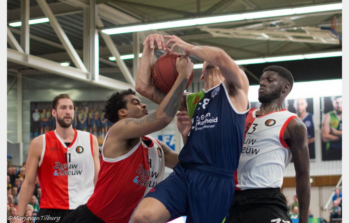 Zorg en Zekerheid Leiden was niet van plan zich te laten verrassen door Zeeuw & Zeeuw Feyenoord Basketball. De Leidse ploeg was klaar om te spelen, de Rotterdammers niet. De bezoekers konden het Leidse tempo in de eerste tien minuten niet bijbenen. Het frivool spelende Zorg en Zekerheid Leiden denderde door naar een 36-12 zege. Daarna kwamen de Rotterdammers wel wat beter in de wedstrijd, maar dat was bij lange na niet genoeg om de winst te pakken. Bij 96-81 kwam de wedstrijd ten einde en is Zorg en Zekerheid Leiden de Rotterdammers op de ranglijst gepasseerd.