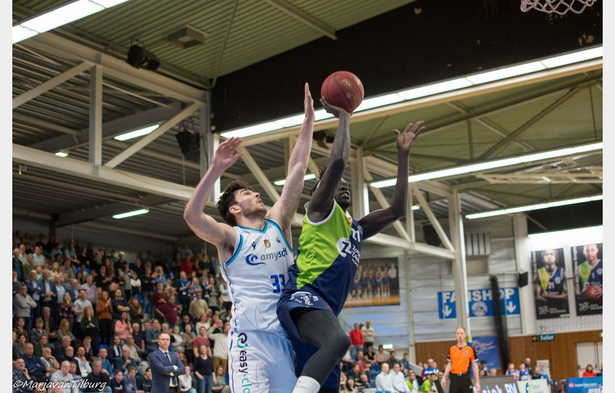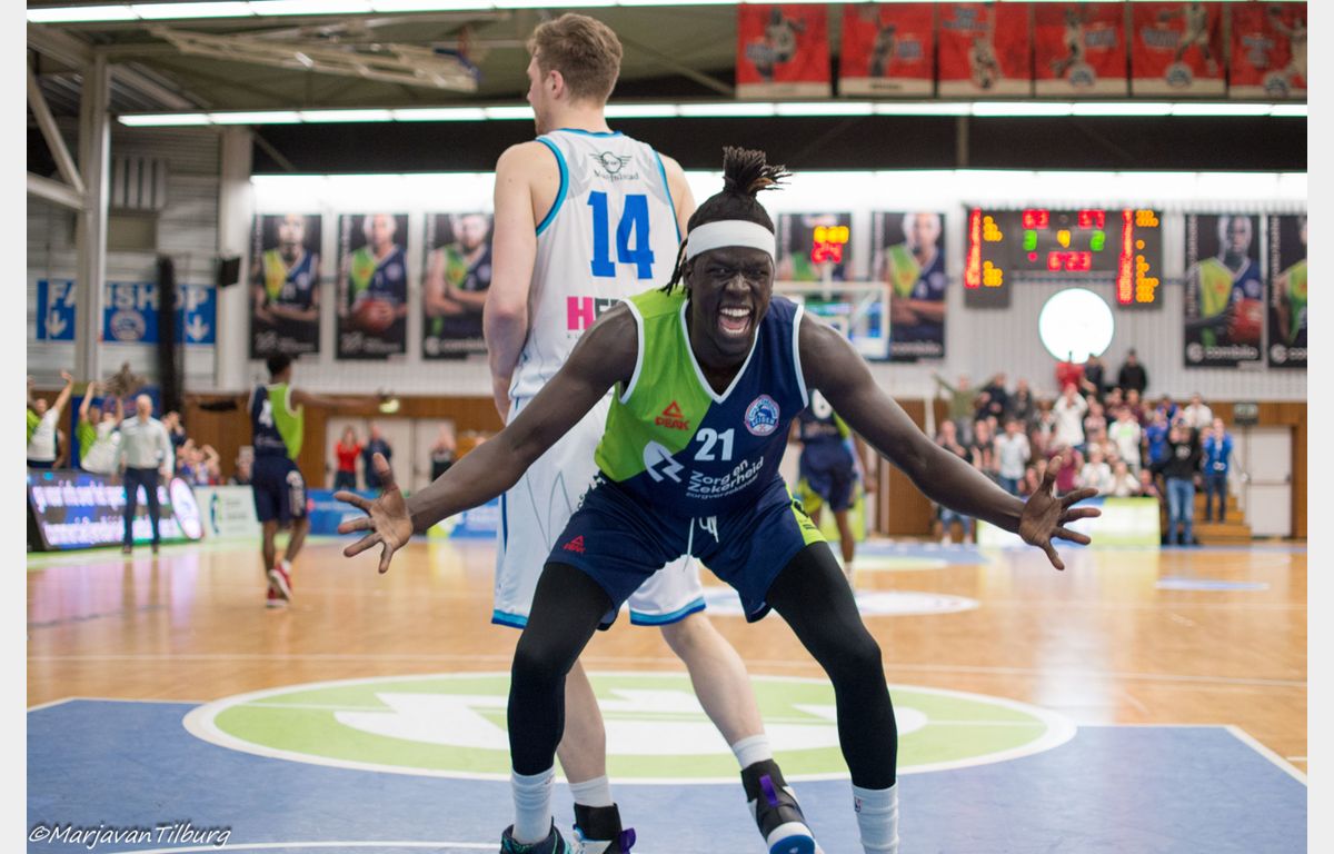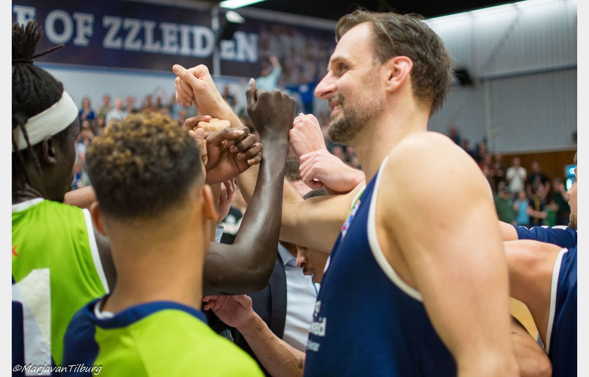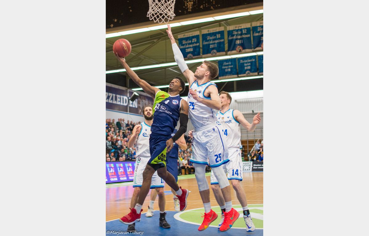 Daarna volgden twee minuten waarin alles wat Zorg en Zekerheid Leiden deed in goud veranderde. De Jong benutte een lay-up, Drago Pasalic drukte onder druk van de schotklok succesvol af voor drie, waarna misschien wel de mooiste actie kwam. De Jong ging op de basket af met twee verdedigers net achter zich. Hij speelde de bal tussen zijn benen door naar Omot die met een spijkerharde dunk voor 65-57 zorgde. De time-out van Erik Braal, met nog zes minuten te gaan, was dan ook logisch