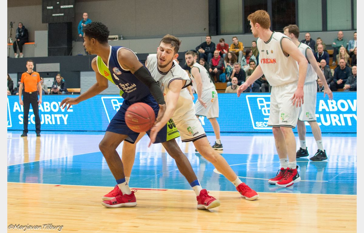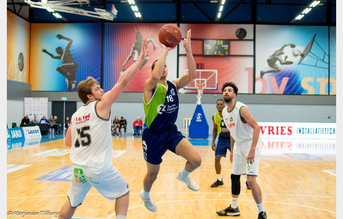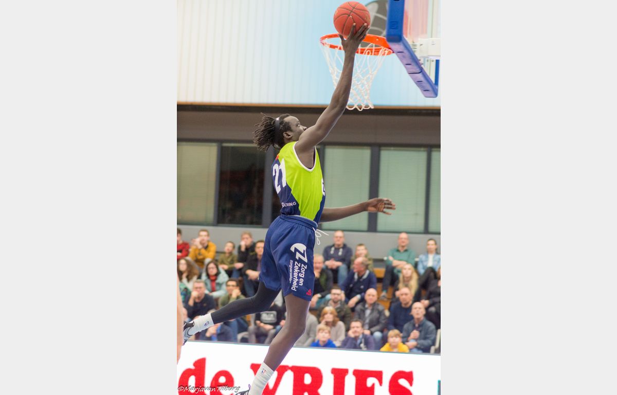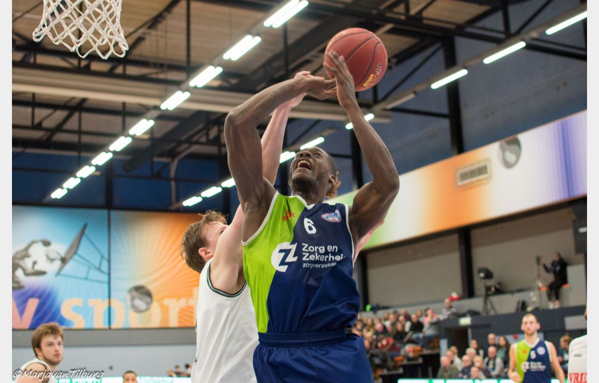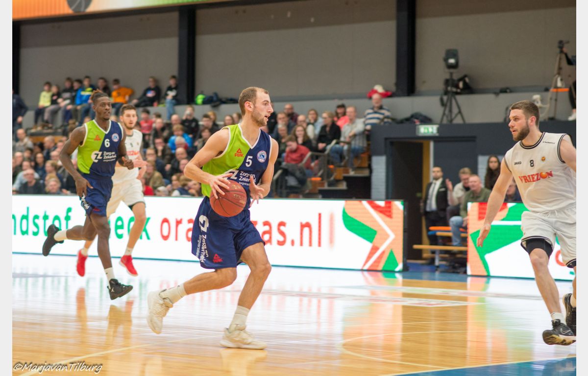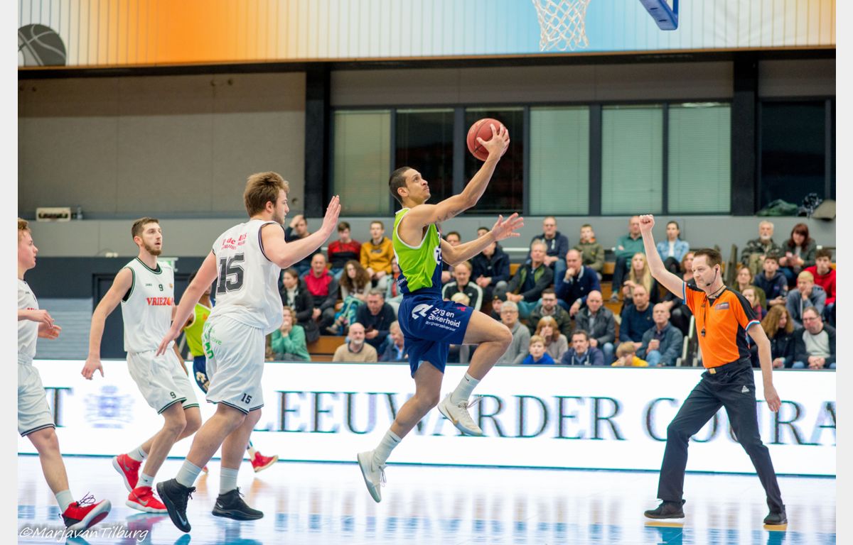 Omot wist daarna nog wel twee vrije worpen te benutten en enkele seconden voor tijd ook nog hard raak te dunken, maar het leed was al geschied. Aris Leeuwarden bezorgde Zorg en Zekerheid Leiden met 64-60 een koude douche. Door de verrassende nederlagen van Heroes Den Bosch (thuis tegen Basketbal Academie Limburg) en Zeeuw & Zeeuw Feyenoord (bij Apollo) hadden een gunstige uitwerking kunnen hebben bij een Leidse zege. Het heeft niet zo mogen zijn. Komende week zorgen dat iedereen weer fit(ter) wordt, zodat er komende zaterdag met een voltallige ploeg naar Rotterdam afgereisd kan worden.