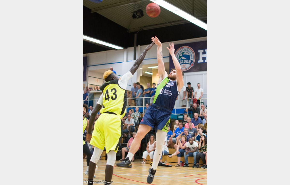 Zorg en Zekerheid Leiden heeft zaterdagavond het eerste oefenduel van het nieuwe seizoen niet in winst kunnen omzetten. Zonder Drago Pasalic kwam de Leidse ploeg centimeters te kort, waardoor Filou Oostende vaak inside kon scoren. Toch bood Zorg en Zekerheid Leiden goed partij. Via een ruststand van 36-44 werd het uiteindelijk 72-84.