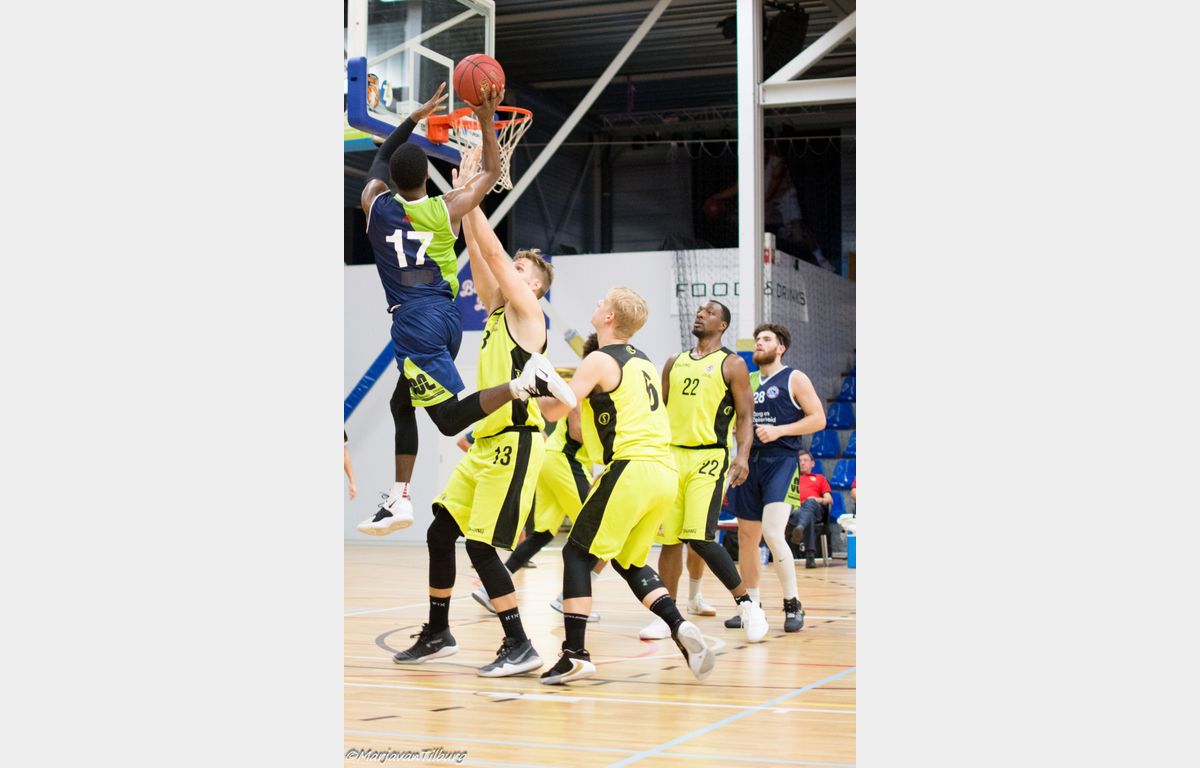 Al snel bleek dat er geen kruid tegen Shevon Thompson gewassen was. De Amerikaanse mastodont (net zo lang als breed) torende hoog boven de Leidse spelers uit en was inside behoorlijk handig. Hij tekende voor de eerste elf Belgische punten.