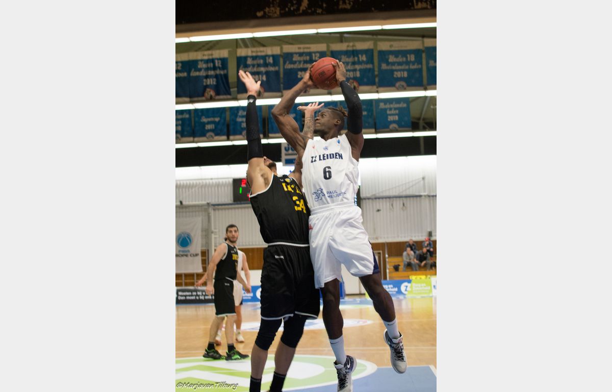 Je zou een messcherp Zorg en Zekerheid Leiden mogen verwachten, maar daar zag het aanvankelijk niet naar uit. Goed, Worthy de Jong zette de Leidse ploeg met een sterke actie naar de ring wel op voorsprong, maar daar bleef het bij. Zorg en Zekerheid Leiden verdedigde niet sterk en gaf een aantal vrije schoten weg aan Inter Bratislava. Bovendien was het reboundwerk in de verdediging voor de pauze ondermaats.