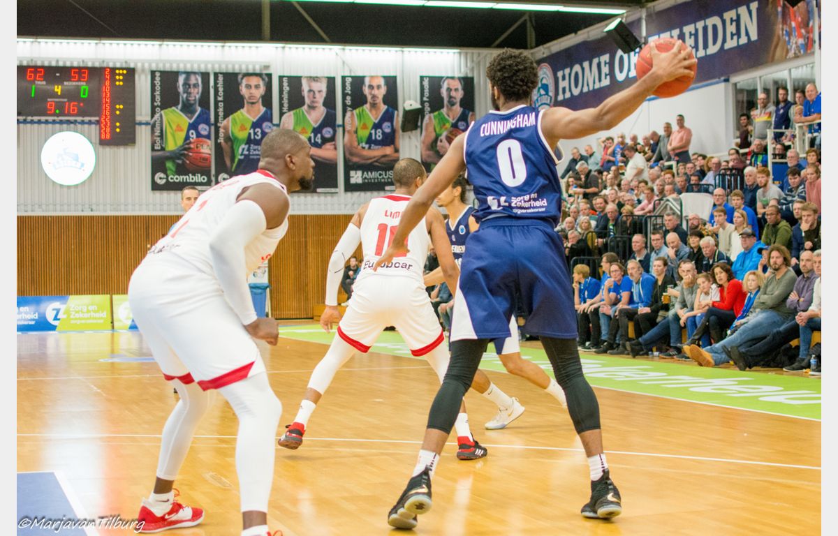 Als je vooraf had gezegd dat Zorg en Zekerheid Leiden met 16 punten verschil van Benfica zou winnen, dan werd je voor gek verklaard. Maar dat is precies wat er woensdagavond in de Vijf Meihal gebeurde. In het middenstuk van het duel voor de FIBA Europe Cup nam de Leidse ploeg een ruime voorsprong. Dat was genoeg om onbedreigd de winst te pakken met 84-68.