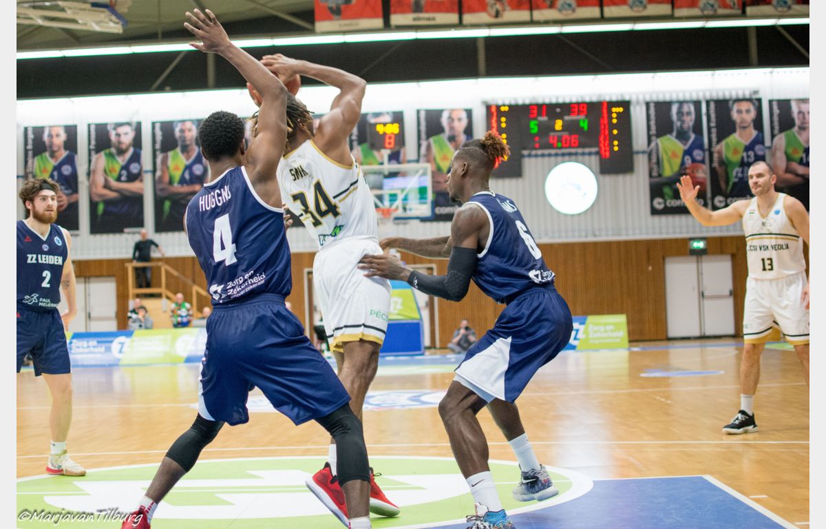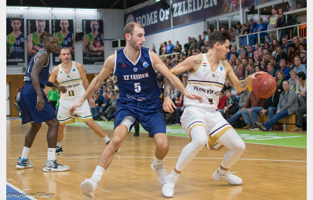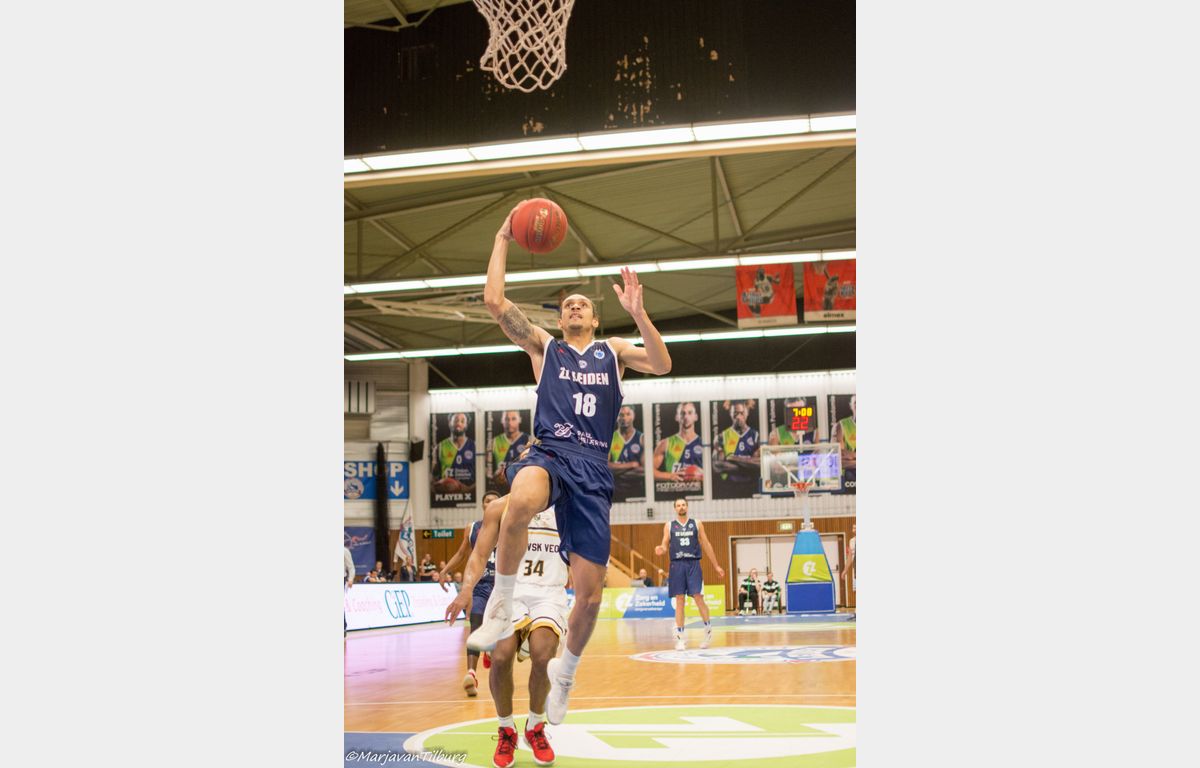 Zorg en Zekerheid Leiden is na vier Europese duels in eigen huis nog steeds ongeslagen, al ging dat woensdagavond verre van makkelijk. PVSK-Veolia had de winst voor het grijpen, maar Worthy de Jong blockte een dunkpoging en Sergio de Randamie gooide net voor de buzzer afging de gelijkmakende driepunter door de ring. In de verlenging pakte Zorg en Zekerheid Leiden alsnog de winst: 105-100.