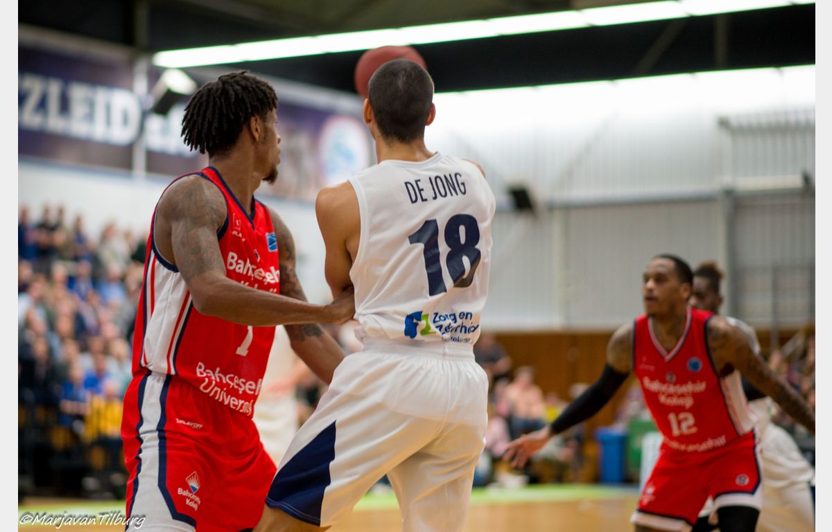 Huggins opende de tweede helft met een driepunter voor 46-47, maar daarna liepen de Turken weer weg naar 50-60. Zafer Aktas, de coach van Bahcesehir, had zijn huiswerk goed gedaan. Hij had zijn spelers voorgehouden om Tayler Persons en De Jong niet in de wedstrijd te laten komen. Persons kwam wel op 10 punten uit (allemaal na rust), maar had daar veel pogingen voor nodig. De Jong kwam ook niet verder dan 9 punten tegen 30%. Dan is het prettig wanneer andere spelers opstaan. Zo tekende het centerduo Pasalic/Sergio de Randamie samen voor 18 punten. Ook Omot deed er een schepje bovenop door na de pauze 13 van zijn 18 punten te noteren.