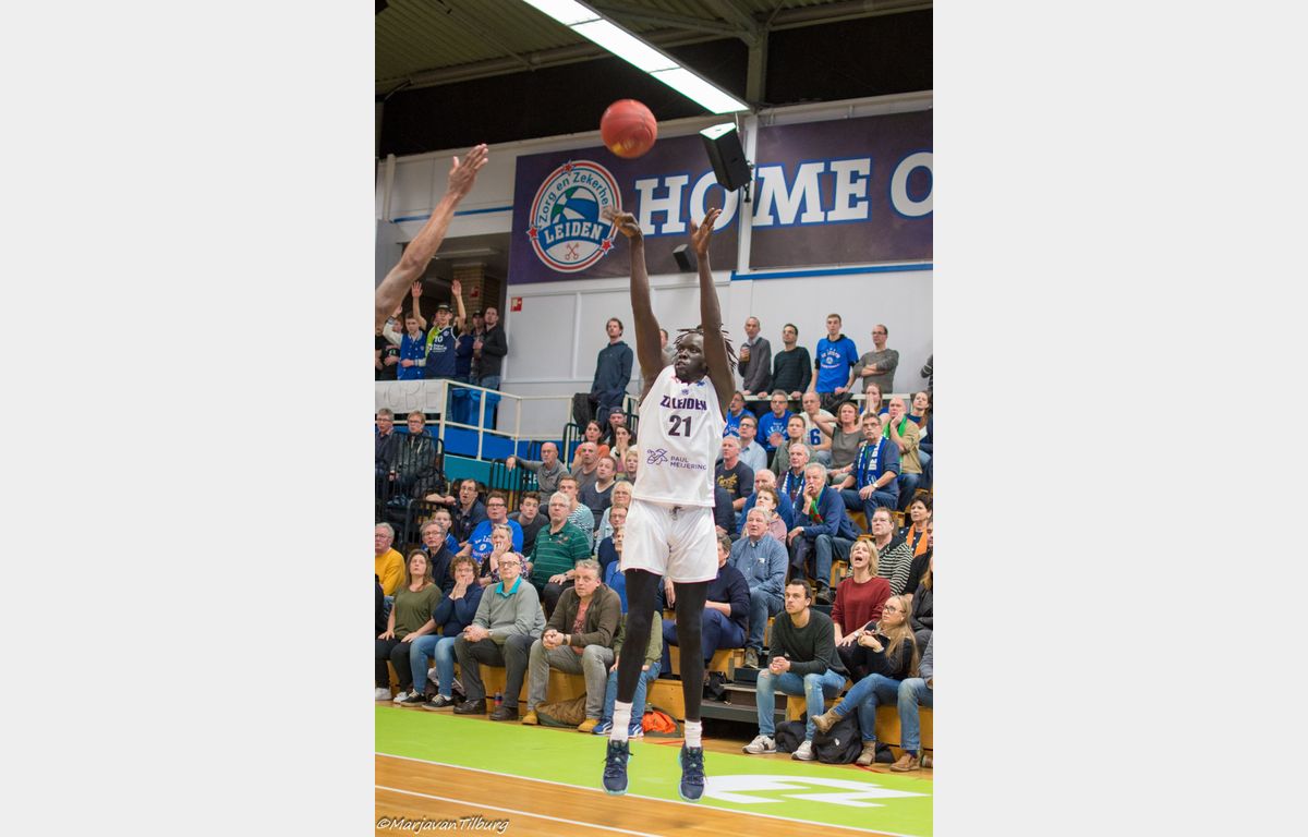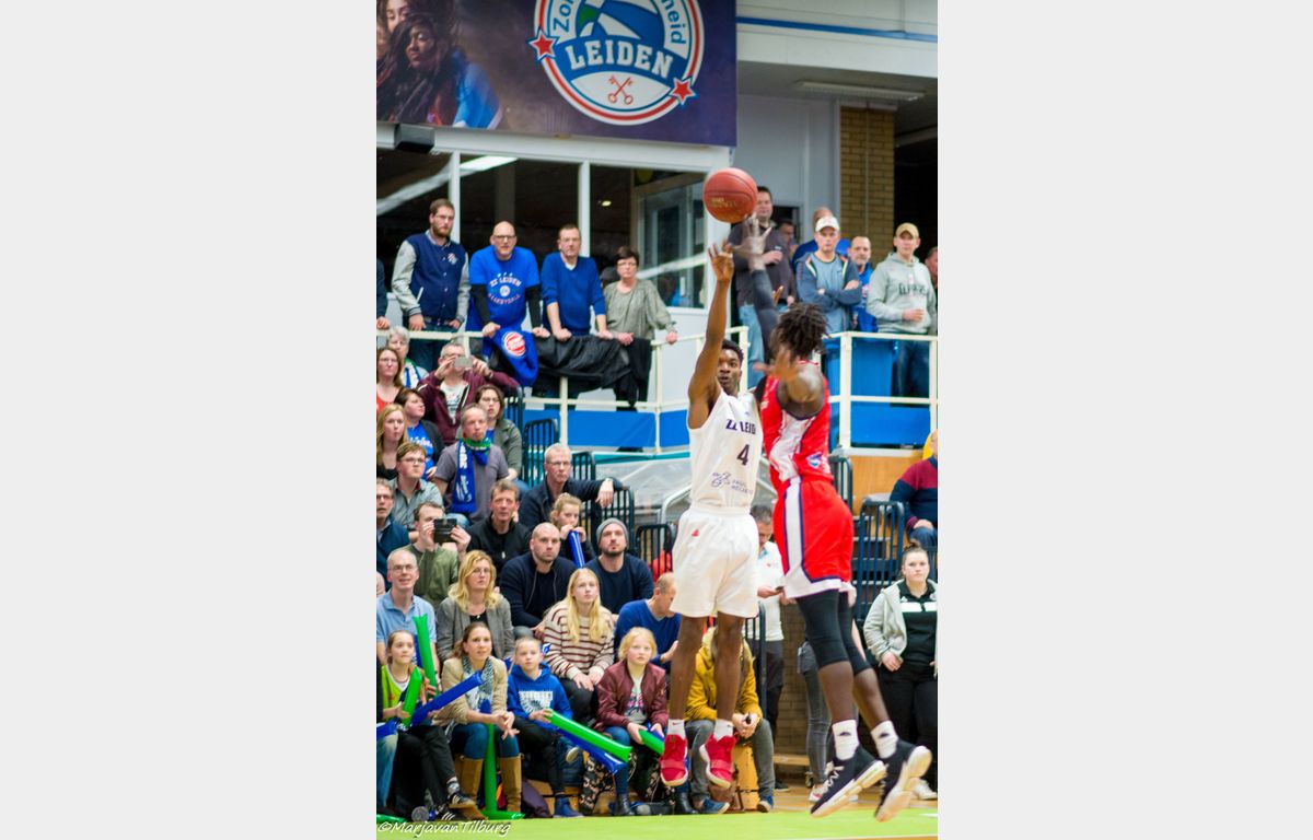 Het wapen van de driepunter was vanavond het belangrijkste aanvalswapen van Zorg en Zekerheid Leiden. In de eerste helft zou de Leidse ploeg tien driepunters (uit 17 pogingen) verzilveren en slechts één tweepunter.