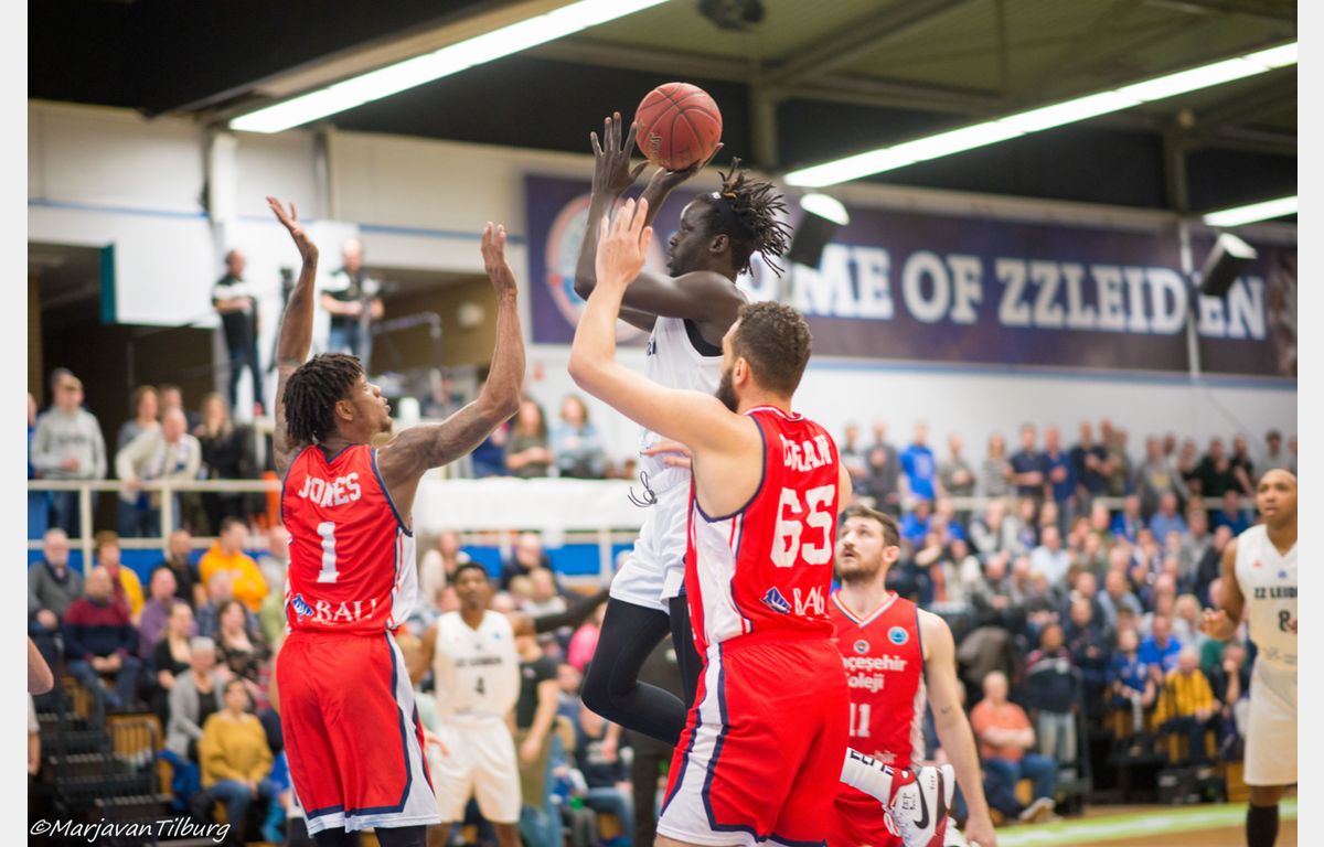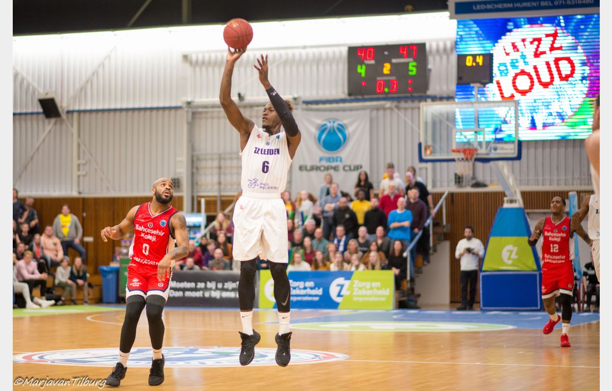 Vlak daarna liep Omot tegen zijn vijfde fout aan en verstapte Persons zich in de aanval. Beide spelers moesten dus naar de kant. Na een misser van Huggins kreeg Bahcesehir College de kans om de inmiddels gelijke stand weer om te buigen in een voorsprong. Jones miste de driepunter, maar de bal ging via Leidse handen over de zijlijn, wat overigens fel werd betwijfeld. Time-out Bahcesehir met nog 20 seconden te gaan. Meteen na de uitbal volgde nog een dubieuze call. Was het voetbal van Jones of van De Jong. De arbitrage besloot de bal aan de Turken te geven. Gordon trof vervolgens geen doel, maar de aanvallende rebound en score was voor Jones. Er waren nog een kleine vijf seconden te gaan, maar een Leidse time-out bleef uit. Er volgde nog wel een driepunter van Williams, maar die was buiten de tijd. Bahcesehir pakte dus alsnog de 87-89 winst en zit nog in het toernooi. Zorg en Zekerheid Leiden mag woensdag nog naar Siberië voor een wedstrijd om des keizers baard.