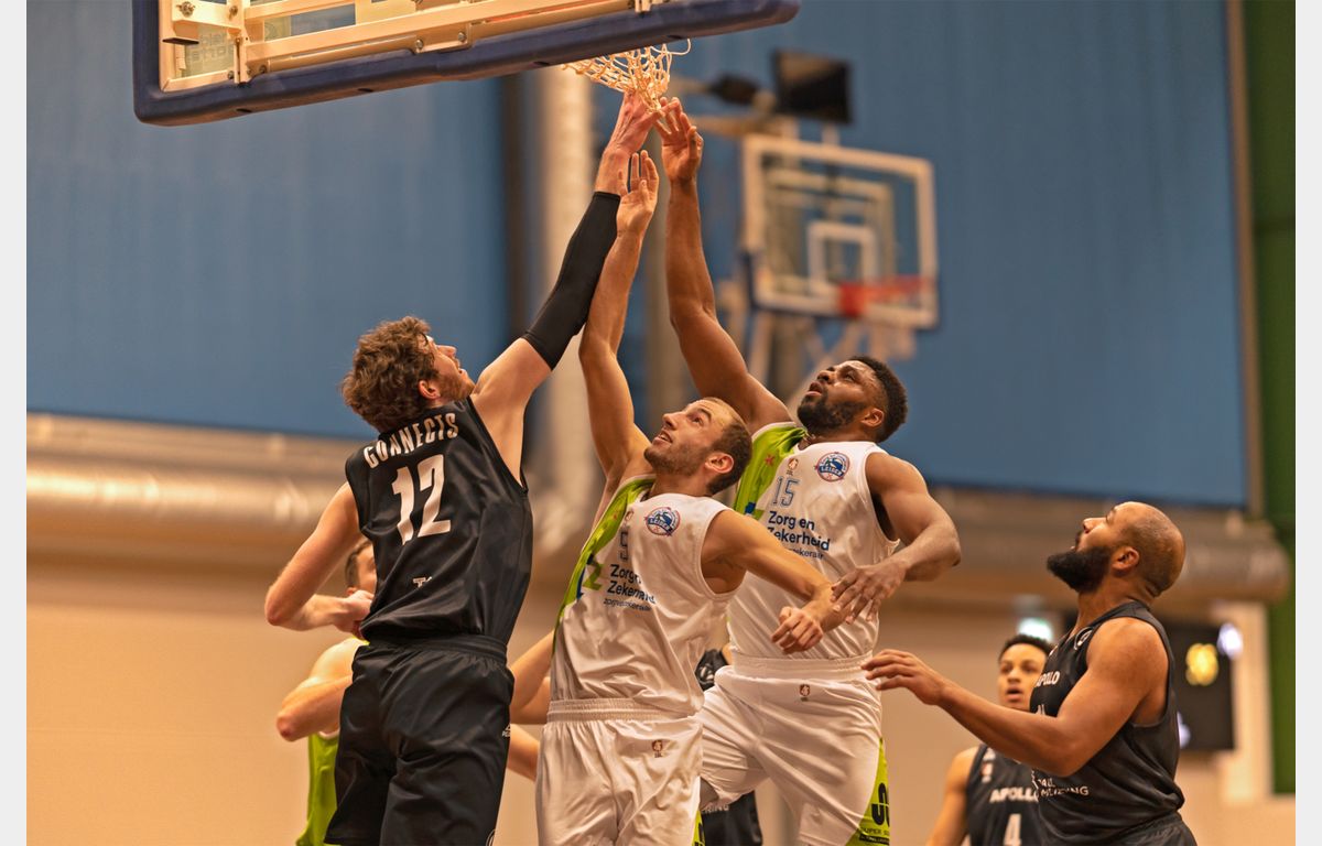 Apollo Amsterdam veranderde van tactiek door een agressieve zone neer te zetten. Dat leverde een driepunter van Sibilo en een dunk van Nzekwesi op: 42-63. Toch was het pleit nog niet beslecht. Apollo antwoordde met een 8-0 en kon na vier gemiste vrije worpen van Zorg en Zekerheid Leiden terugkomen tot 55-65. Via vijf punten van Nzekwesi en een drietje van De Jong herstelde de formatie van coach Hammink zich prima. Met een stand van 58-72 werd het derde kwart afgesloten.