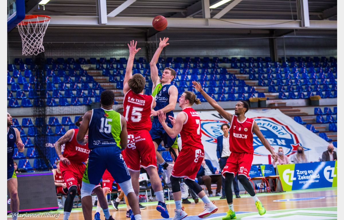 Aris kwam nog even terug tot vijf punten, maar moesten vervolgens een driepunter van Ververs incasseren. Finke gaf ook steun door na rust 13 van zijn 15 punten te scoren. Daarmee was het Friese verzet gebroken en liep de Leidse ploeg weg naar een 75-63 eindstand.