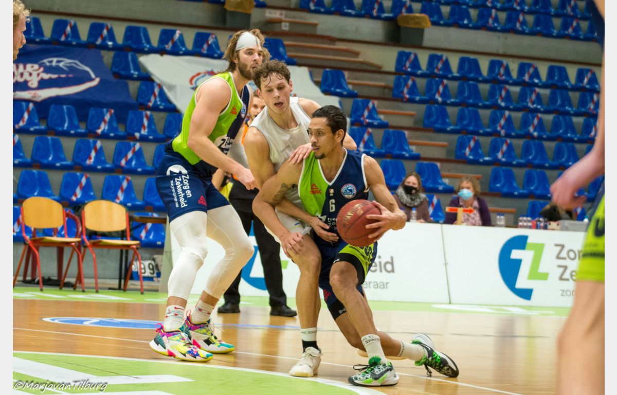 Nzekwesi buffelde zich door naar een double (19 punten, 10 rebounds) en Van Bree kwam na een goede fake even lekker door met een fraaie dunk. Calvin Poulina knalde er een verre driepunter in, waarna Worthy de Jong nog even snel wat scores aaneenreeg. De Jong sloot af met 16 punten, Ververs kwam aan 14 punten en Potts droeg nog 10 punten bij.