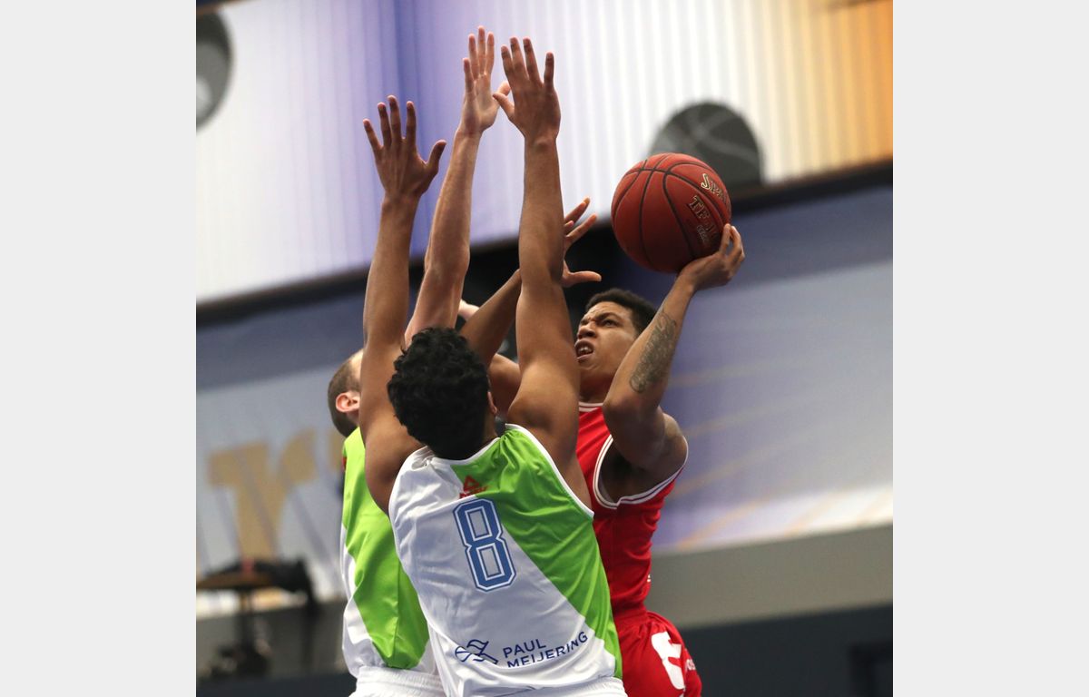 Scores: Emmanuel Nzekwesi 23 (75% schot, 6 rebounds), Giddy Potts 20 (70% schot, 4 drietjes, 3 steals), Michael Finke 20 (53% schot, 8 rebounds, 4 assists), Carrington Love 18 (63% schot, 3 driepunters, 4 assists), Luuk van Bree 7 (8 rebounds, 3 assists), Romano Sibilo 6, Marijn Ververs 2 en Calvin Poulina 2.