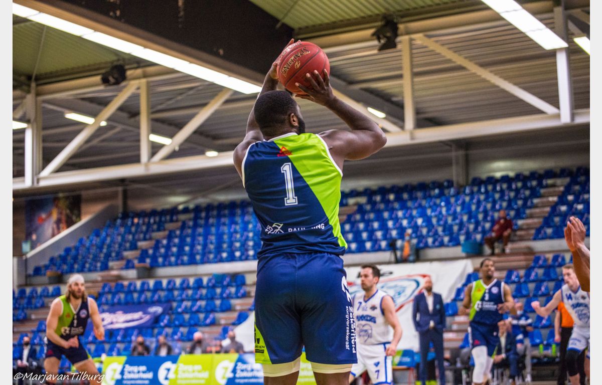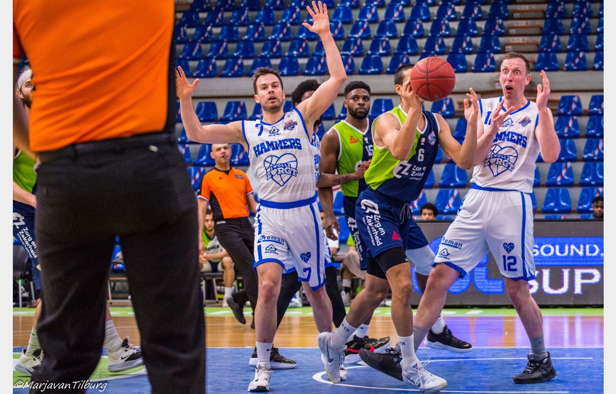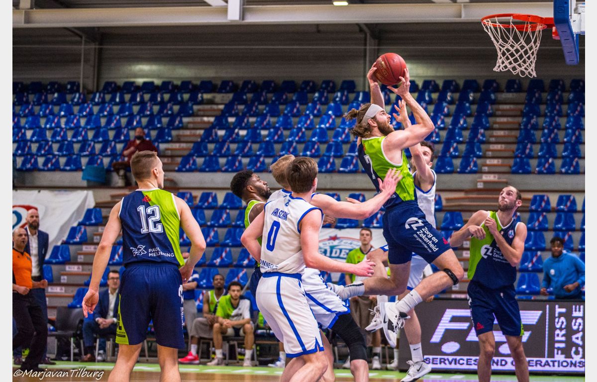 Zorg en Zekerheid Leiden heeft woensdagavond een belangrijke overwinning geboekt. In eigen huis werd Landstede Hammers in een ware nagelbijter met 96-93 verslagen. Buiten dat het onderling resultaat tussen beide ploegen nu weer gelijk is, is het verschil op de ranglijst uitgebreid naar vier punten. Na een betrekkelijk ruime voorsprong kwam Landstede Hammers nog goed terug. 3,2 seconden voor tijd werd het zelfs gelijk. Emmanuel Nzekwesi werd uiteindelijk de matchwinner met een buzzer beating drietje.