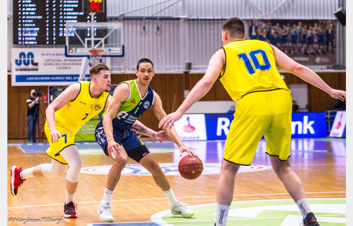 Wie na de pauze een ander spelbeeld zou verwachten, kwam aanvankelijk bedrogen uit. Even leek Zorg en Zekerheid Leiden het lek boven te hebben (and-1 van Marijn Ververs en scores van Finke en Nzekwesi), maar de 53-48 voorsprong ging snel weer in rook op. Een mooi moment was een alley-oop pass van Worthy de Jong naar een dunkende Nzekwesi. Na driepunters op rij van Kovac en Bolden Brace was het na negen minuten spelen in het derde kwart gewoon weer 60-64. Via een and-1 en een dunk van Nzekwesi, die na de pauze 25 van zijn 33 punten liet aantekenen, was het vlak voor het einde van het kwart 65-64. Het laatste woord was echter aan Brace die met een driepunter 65-67 op de borden schoot.